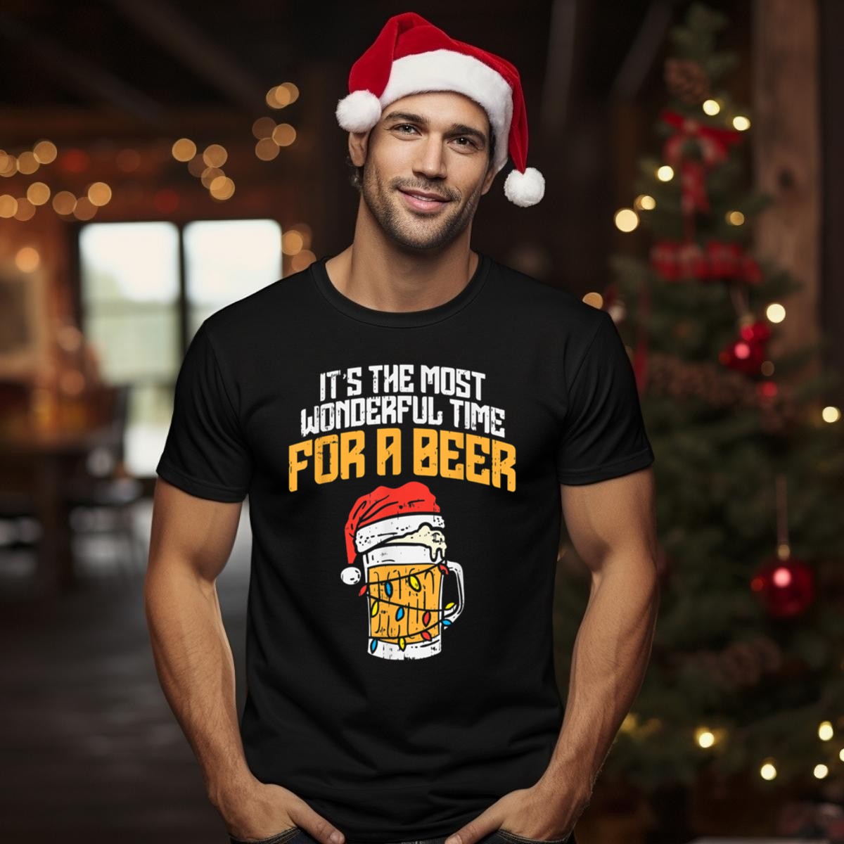 Be the first to review “Its The Most Wonderful Time For A Beer Santa Hat Christmas Lights T Shirt”