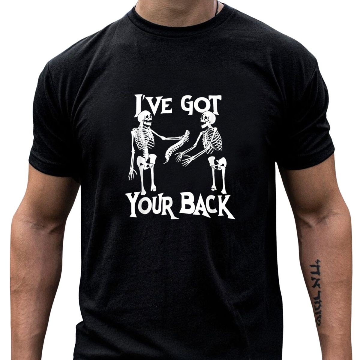 Get ready to embrace the spooky season with our “I’ve Got Your Back Skeleton” T-Shirt, perfect for Halloween enthusiasts and anyone looking to add a playful twist to their casual wardrobe. This fan-made design features a quirky skeleton graphic that’s sure to turn heads at themed events or during everyday outings. Crafted for comfort and style, this shirt is the ideal choice for those who love to showcase their festive spirit while staying comfortable.