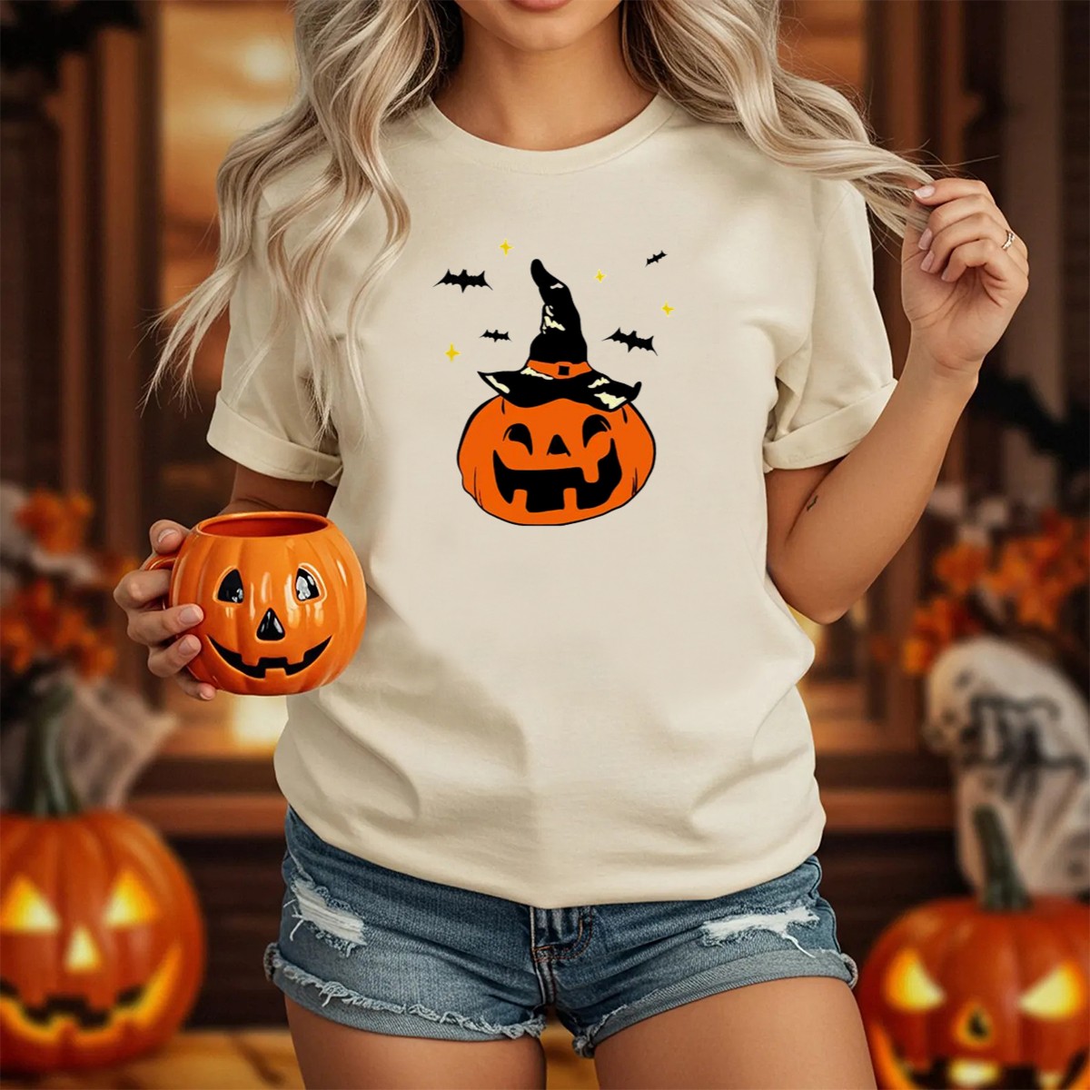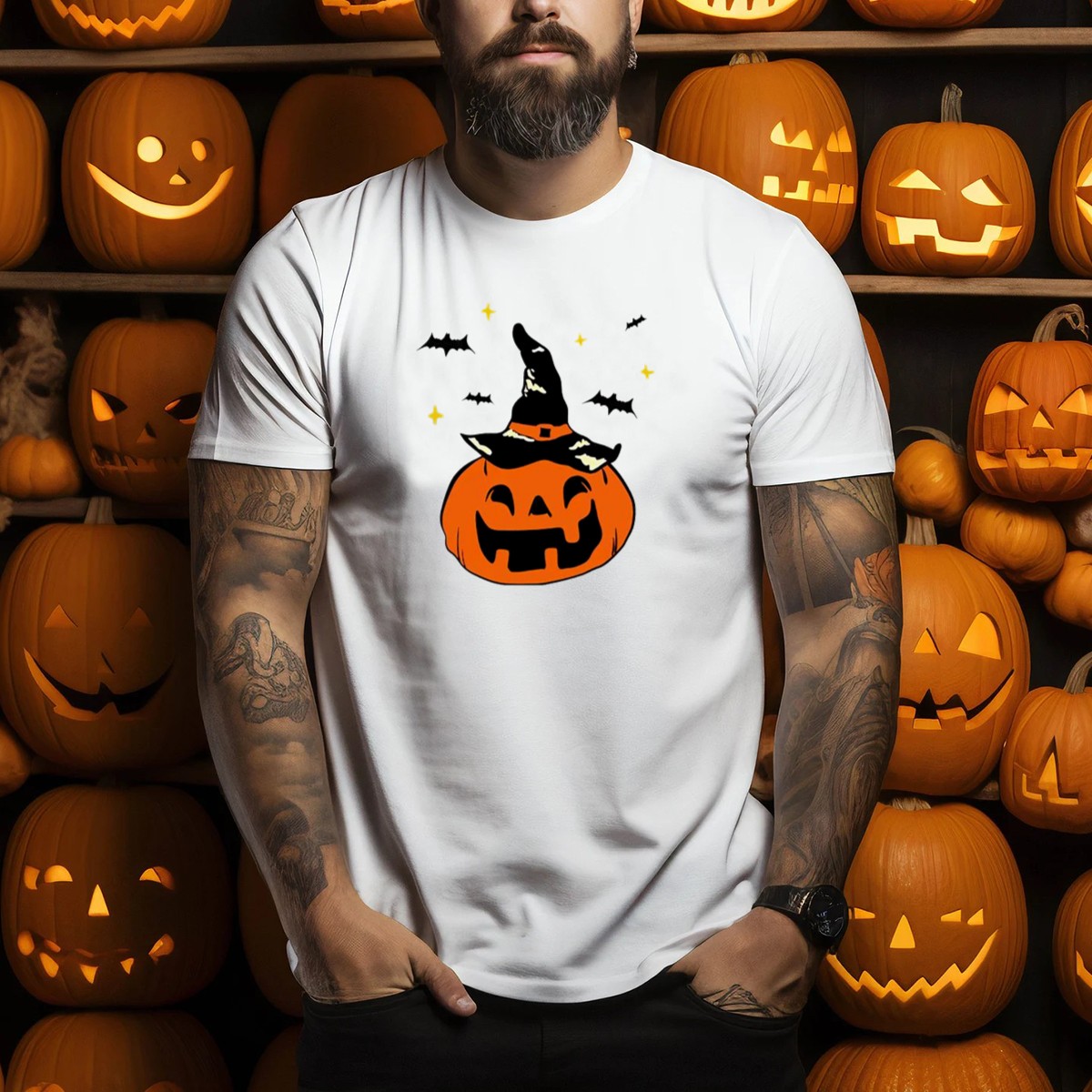 Get into the spooky spirit of Halloween with our Jack O Lantern Witch Hat Bats Stars T-Shirt! Perfect for all ages, this fan-made design adds a playful touch to your casual wardrobe. Whether you’re attending a themed event, trick-or-treating, or simply enjoying a cozy night in, this shirt is your go-to choice for celebrating the season. Printed in the USA, it combines comfort and style, making it a must-have for any Halloween enthusiast.