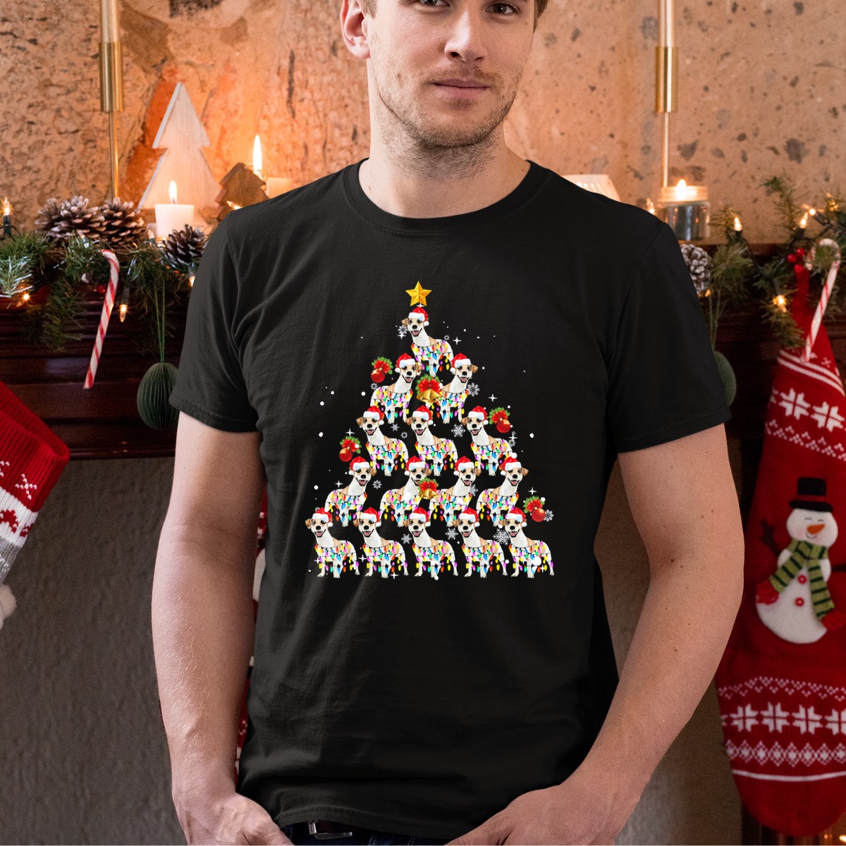 Be the first to review “Jack Russell Christmas Tree With Festive Lights And Santa Hats T-Shirt”