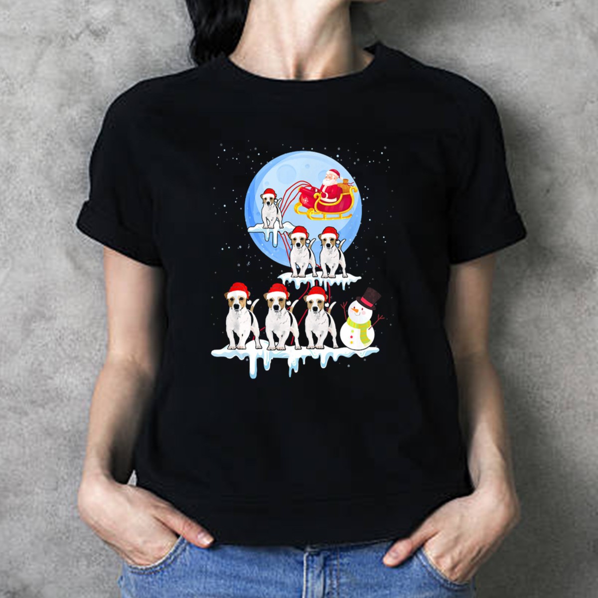 Jack Russell Santa Sleigh Moon Snowman Christmas Dogs T-Shirt