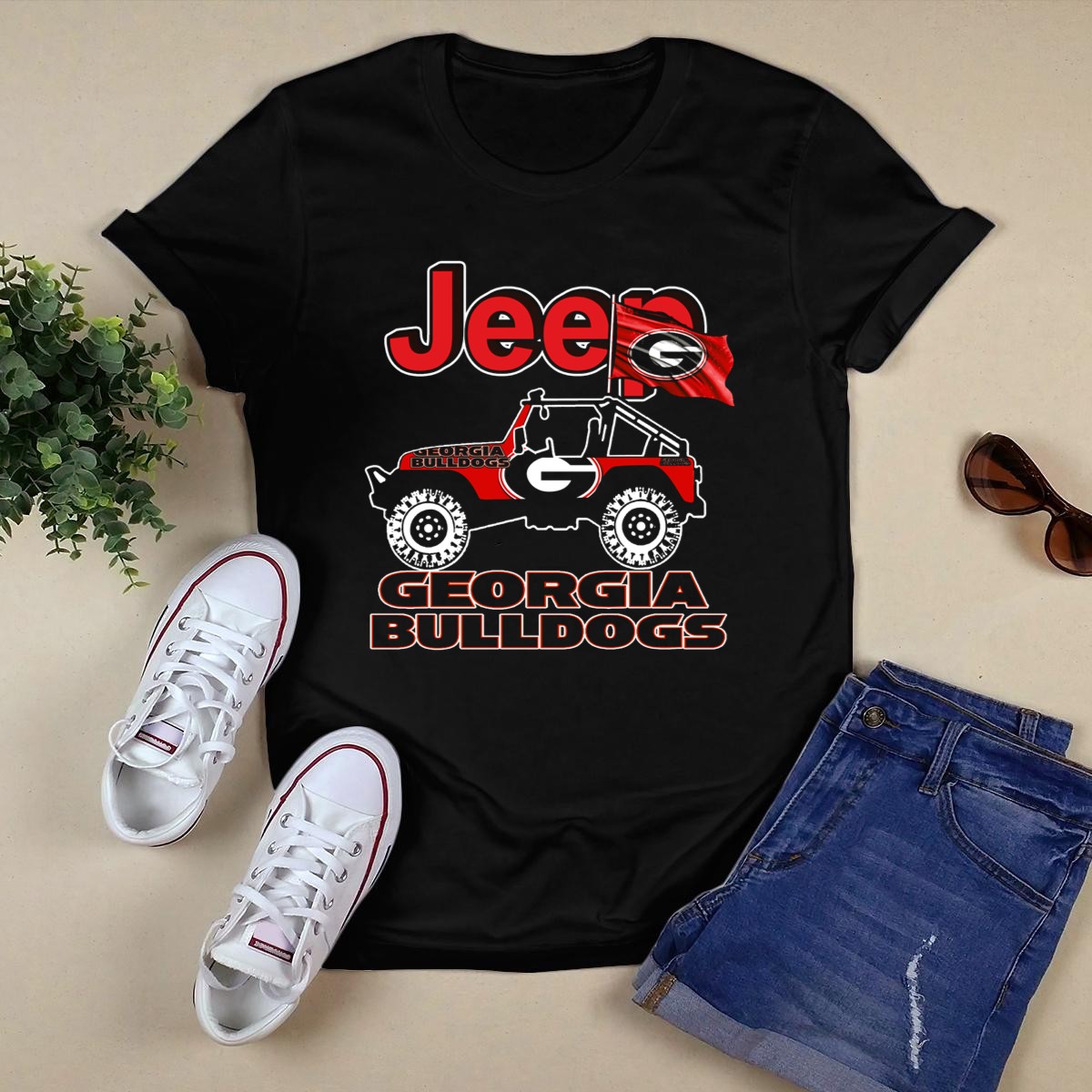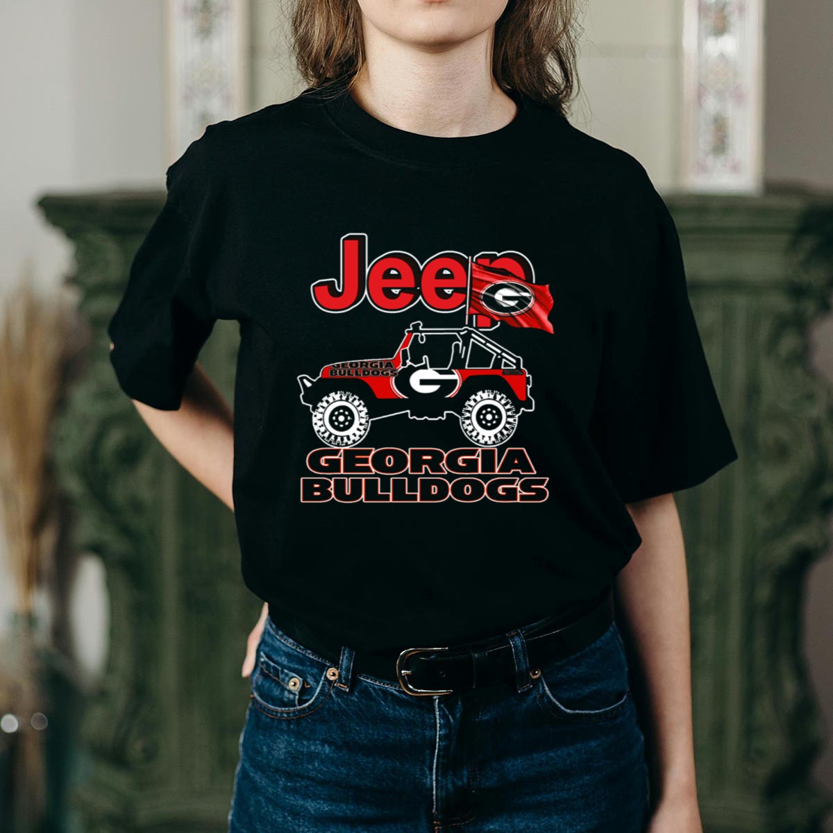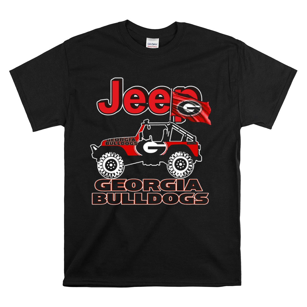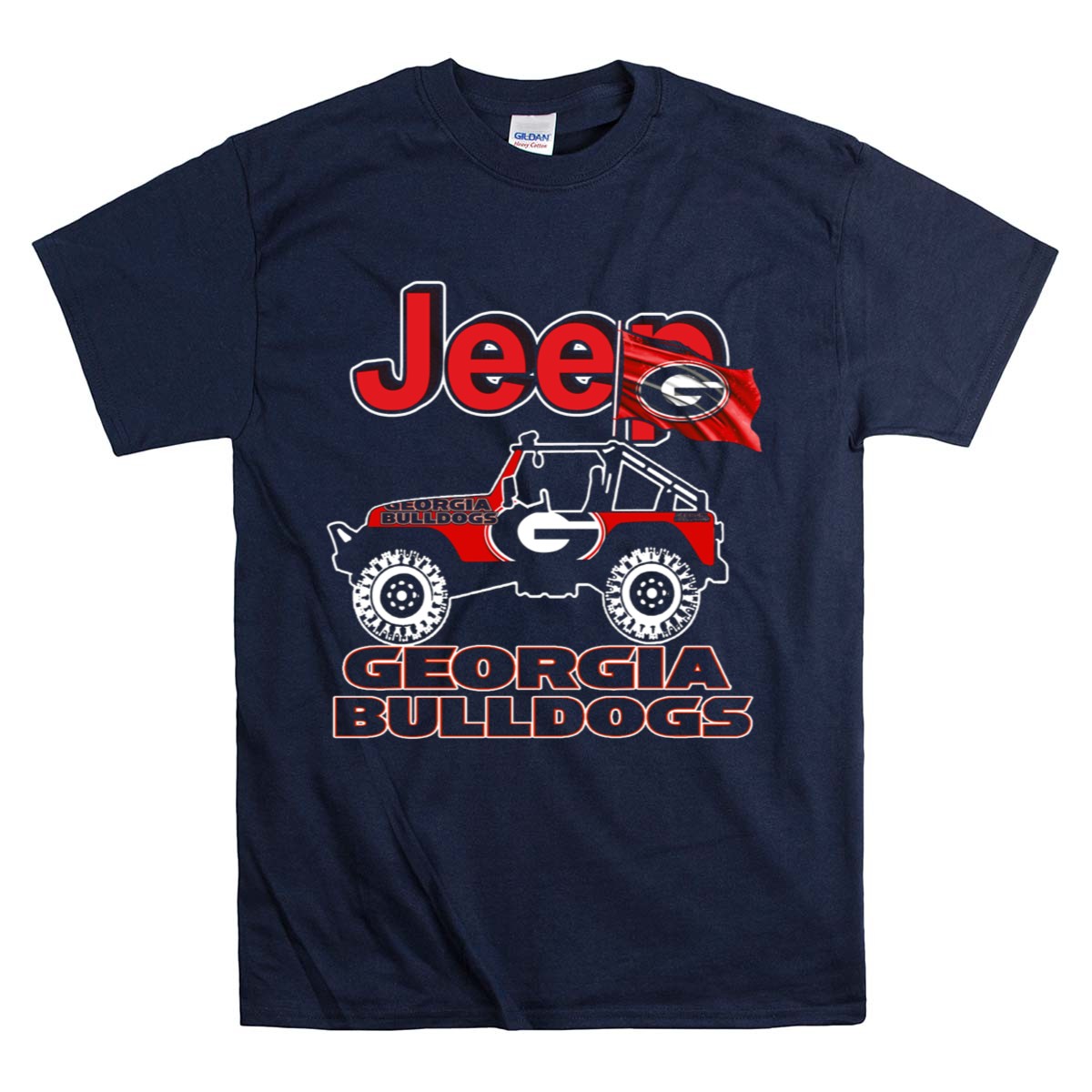 Show off your team spirit with our Jeep Georgia Bulldogs Flag T-Shirt, designed for passionate fans of the Georgia Bulldogs. This fan-made graphic T-shirt captures the essence of the Bulldogs while providing comfort and style for any casual occasion. Perfect for tailgating at games, themed events, or just a day out in the sun, this shirt is a must-have for every loyal supporter looking to display their pride in a unique way. Made right here in the USA, it combines a classic fit with a bold design that stands out.