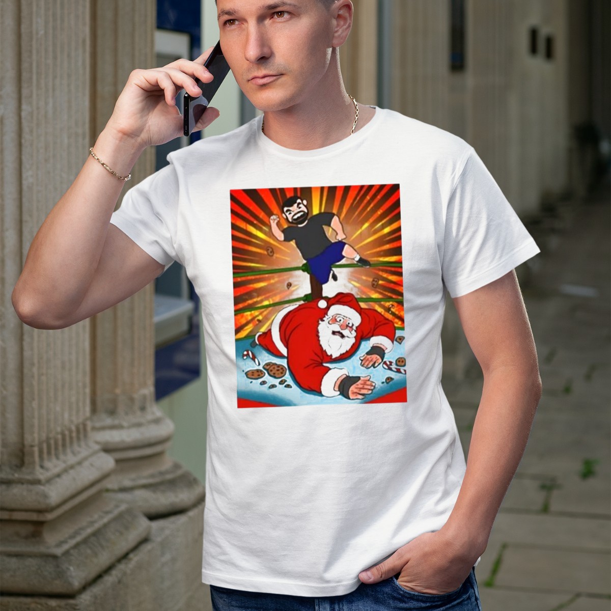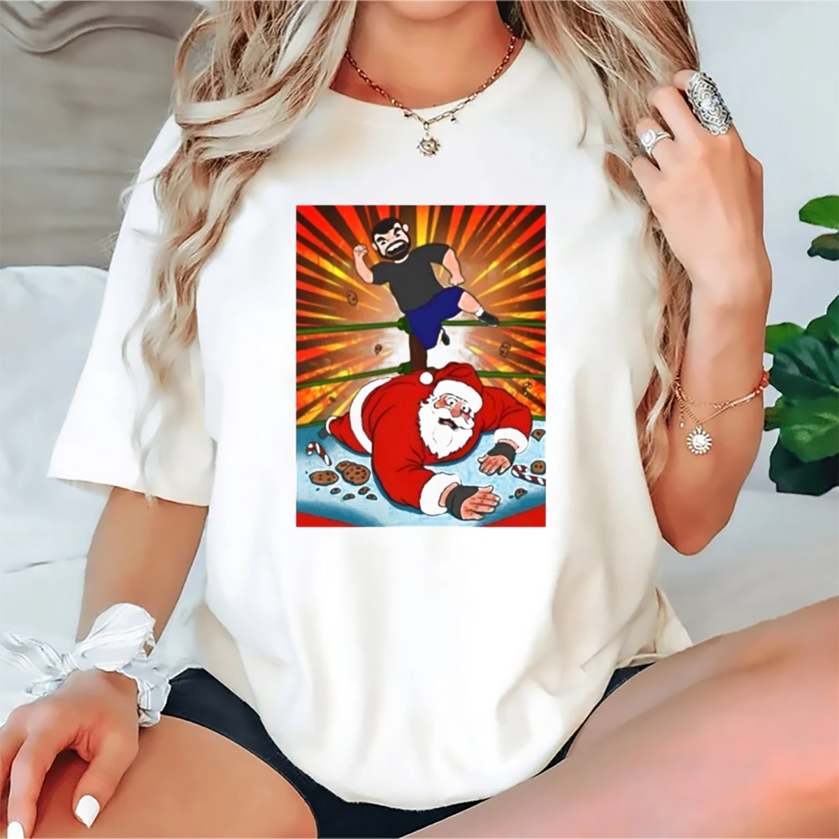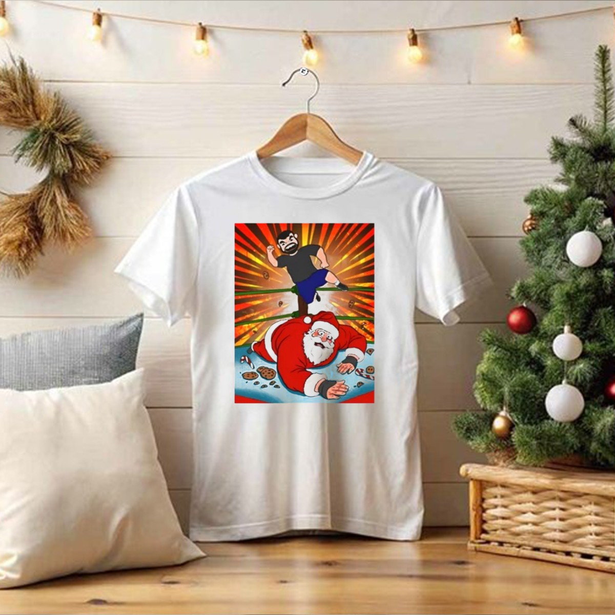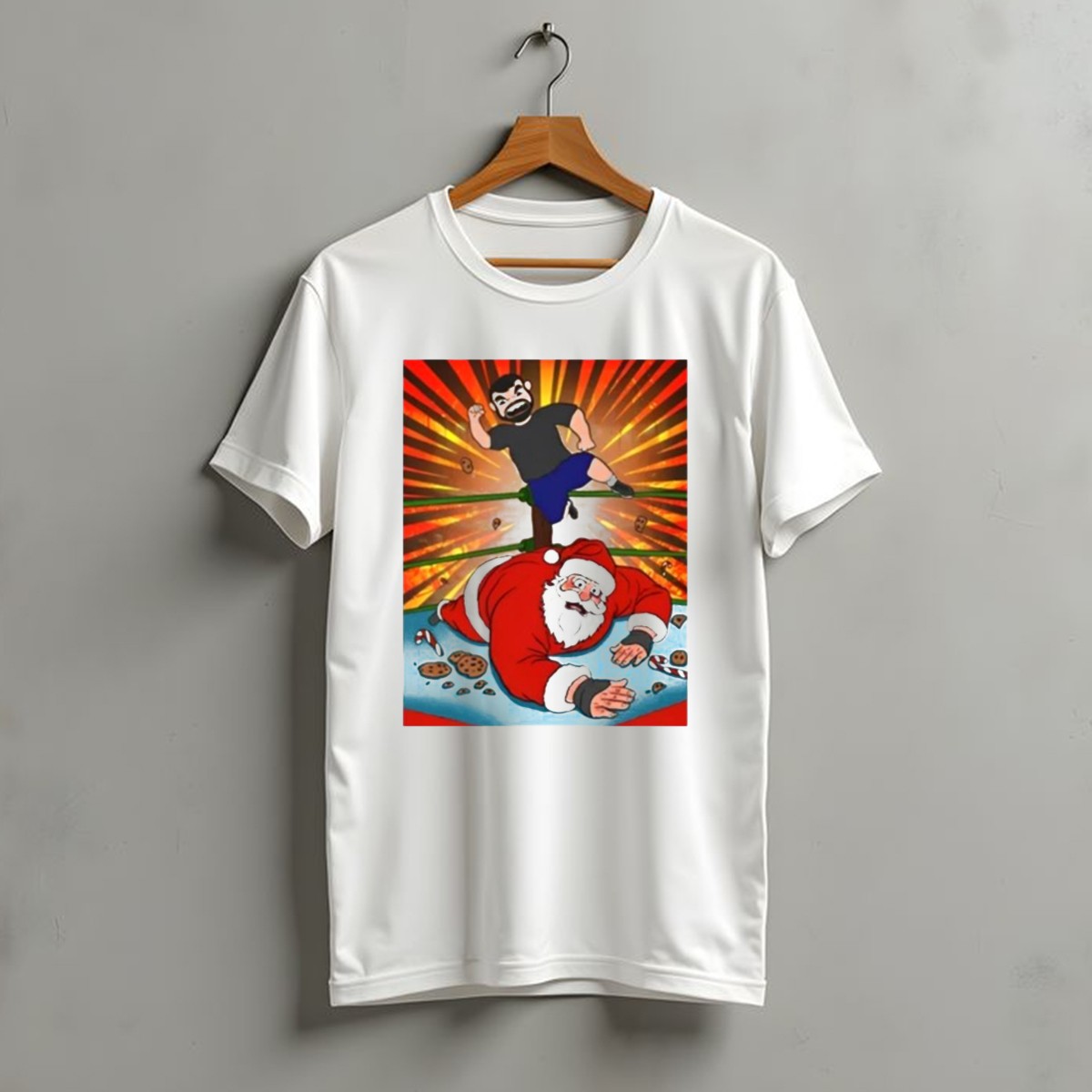 Be the first to review “Jess Jeckel Wrestling Santa Christmas Of Carnage Cookies Candy Canes Ring Explosion T-Shirt”