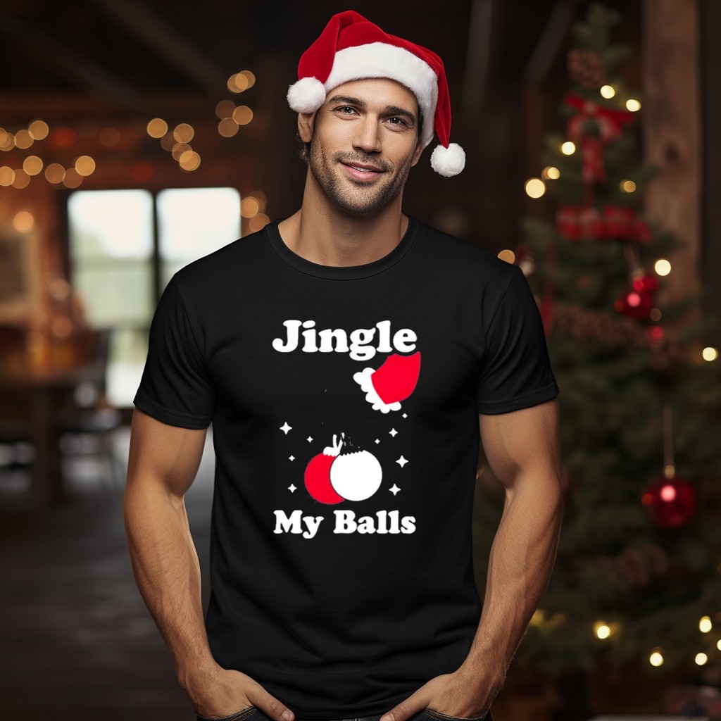 Get into the festive spirit with our Jingle My Balls Christmas Santa Hat T-Shirt! This fun and playful design is perfect for anyone looking to spread holiday cheer at casual gatherings, themed events, or simply during daily wear throughout the season. Made for those who love to showcase their quirky side, this fan-made graphic tee is printed in the USA, ensuring a unique addition to your holiday wardrobe.