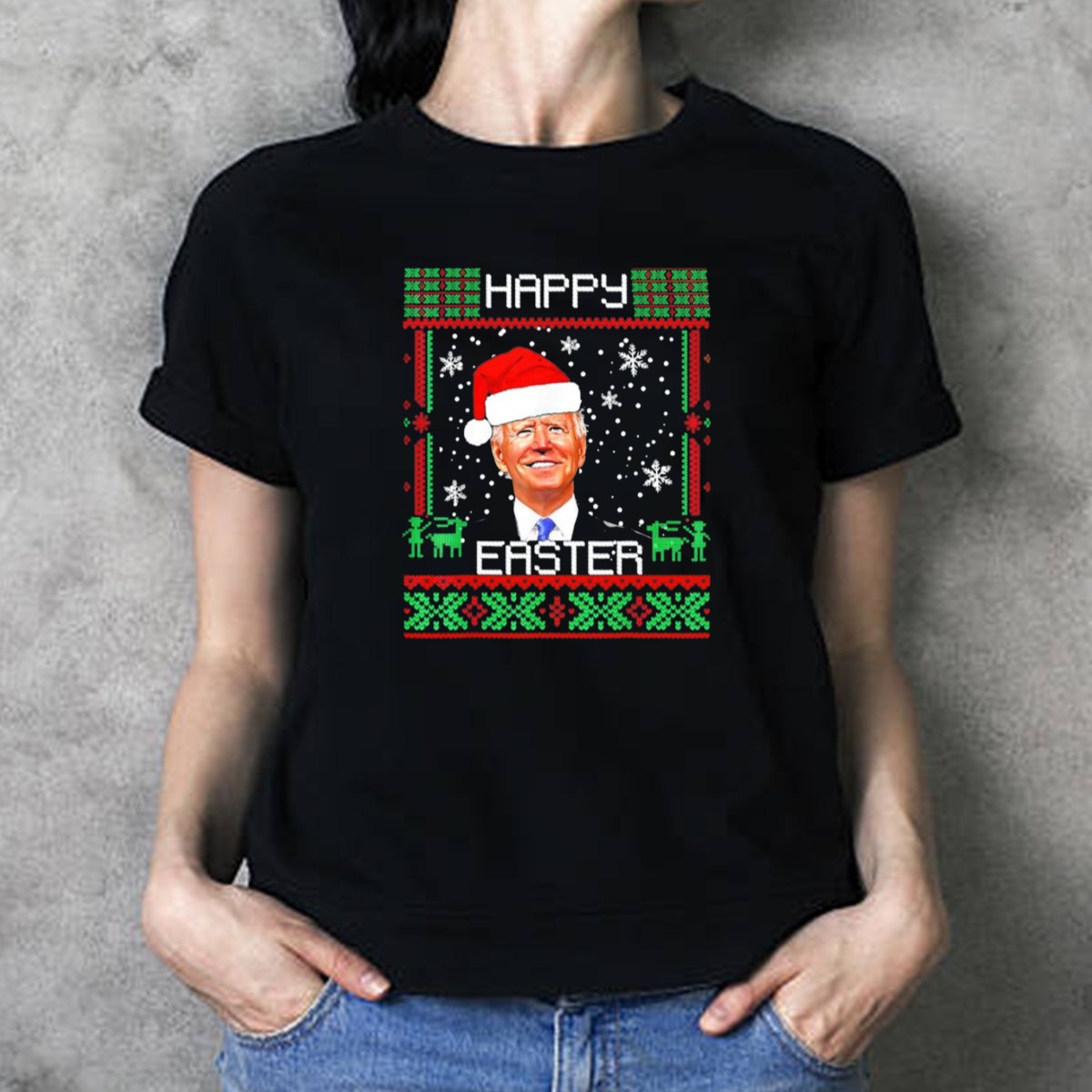 Joe Biden Santa Happy Easter Christmas Snowflakes Reindeer T Shirt