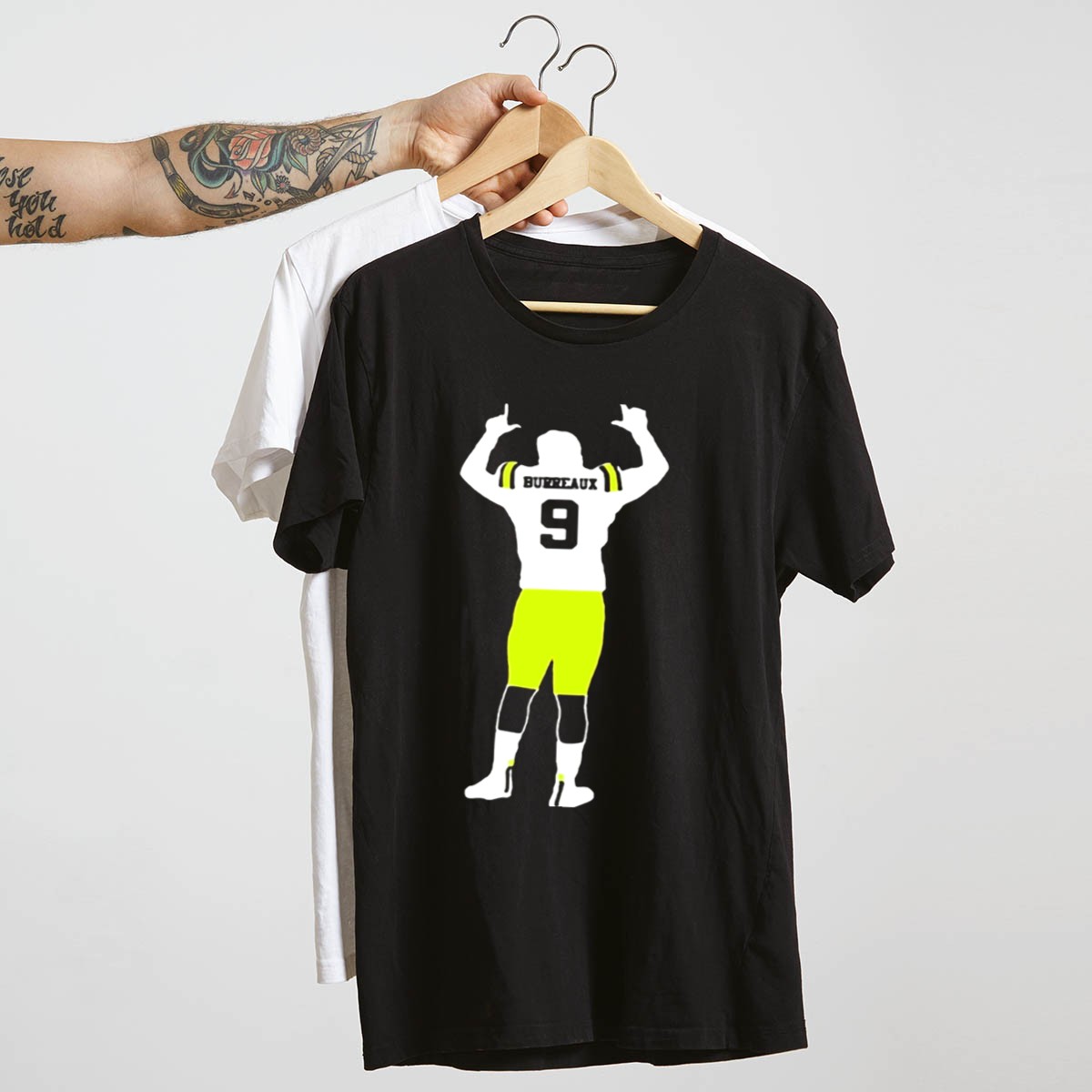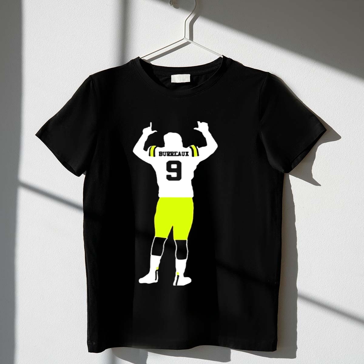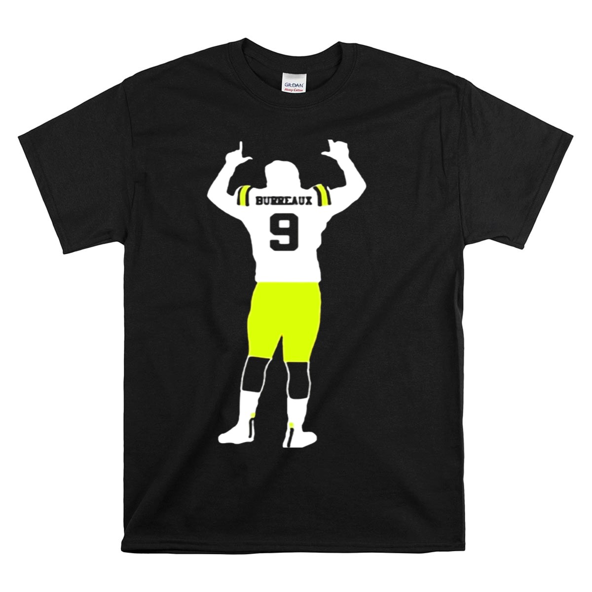 Celebrate your love for LSU football with the Joe Burreaux 9 LSU Football Victory Pose T-Shirt! This fan-made design captures the essence of victory and team spirit, making it the perfect apparel for die-hard LSU supporters. Ideal for casual outings, themed events, or simply showcasing your pride on game day, this shirt is a must-have for any true fan. Printed in the USA, it combines comfort and style, ensuring you look great while cheering for your favorite team!
