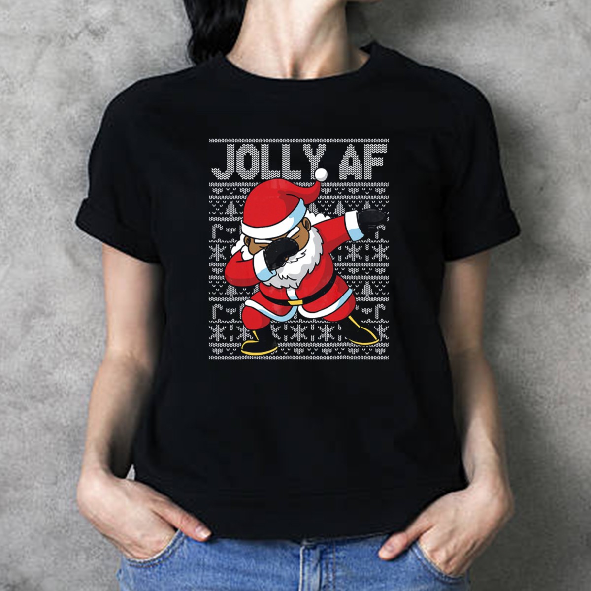Be the first to review “Jolly Af Christmas Dabbing Black Santa T-Shirt”