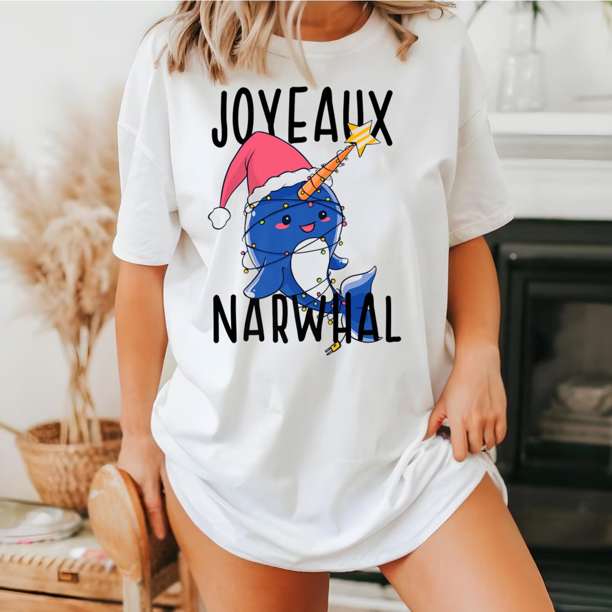 Get into the festive spirit with our Joyeaux Narwhal Christmas Santa Hat Lights Fun Pun Noel T-Shirt! Perfect for all ocean lovers and pun enthusiasts, this shirt features a whimsical design that’s sure to bring smiles at holiday gatherings, themed events, and casual outings. Made with a fan-made design printed right here in the USA, this tee is not just a piece of clothing; it’s a fun expression of joy and holiday cheer!