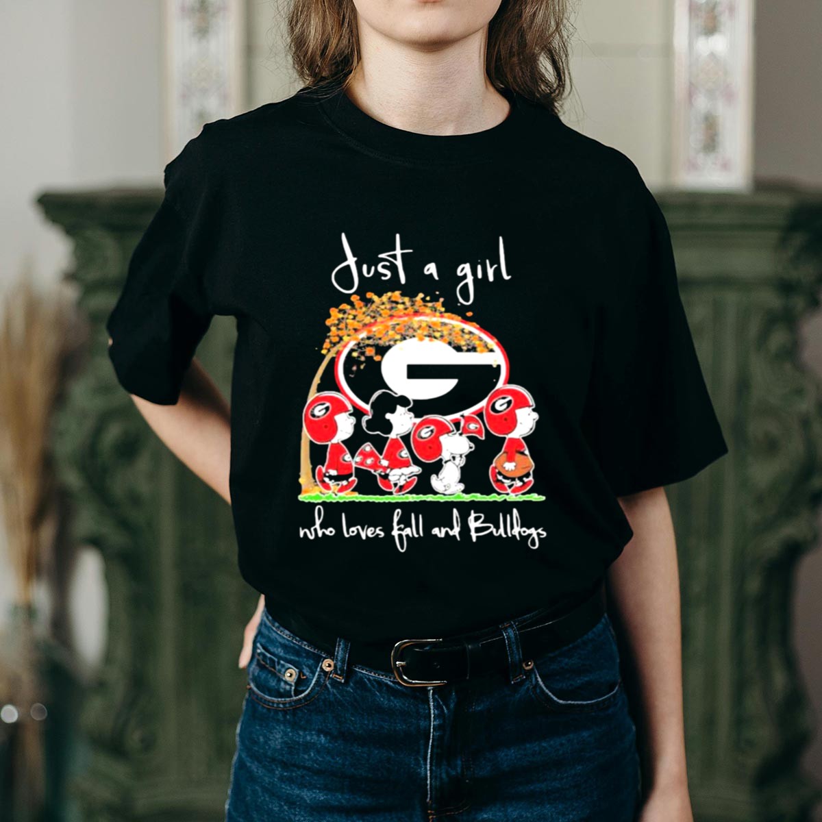 Just A Girl Who Loves Fall And Bulldogs Peanuts Georgia Bulldogs T Shirt
