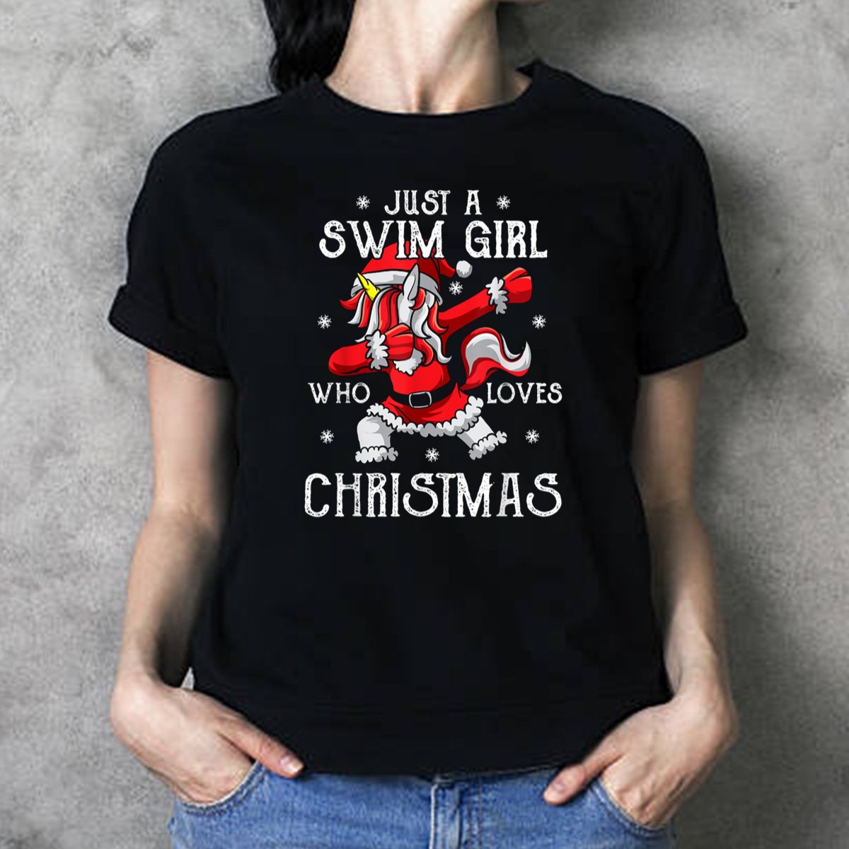 Celebrate the holiday season with our “Just A Swim Girl Who Loves Christmas” T-shirt, perfect for all the aquatic enthusiasts who embrace the festive spirit! This fun and whimsical design features a delightful Santa unicorn, making it an ideal choice for casual wear, themed events, or just lounging at home. Crafted for comfort and style, this shirt is sure to be a hit among those who love to spread cheer while showcasing their passion for swimming.
