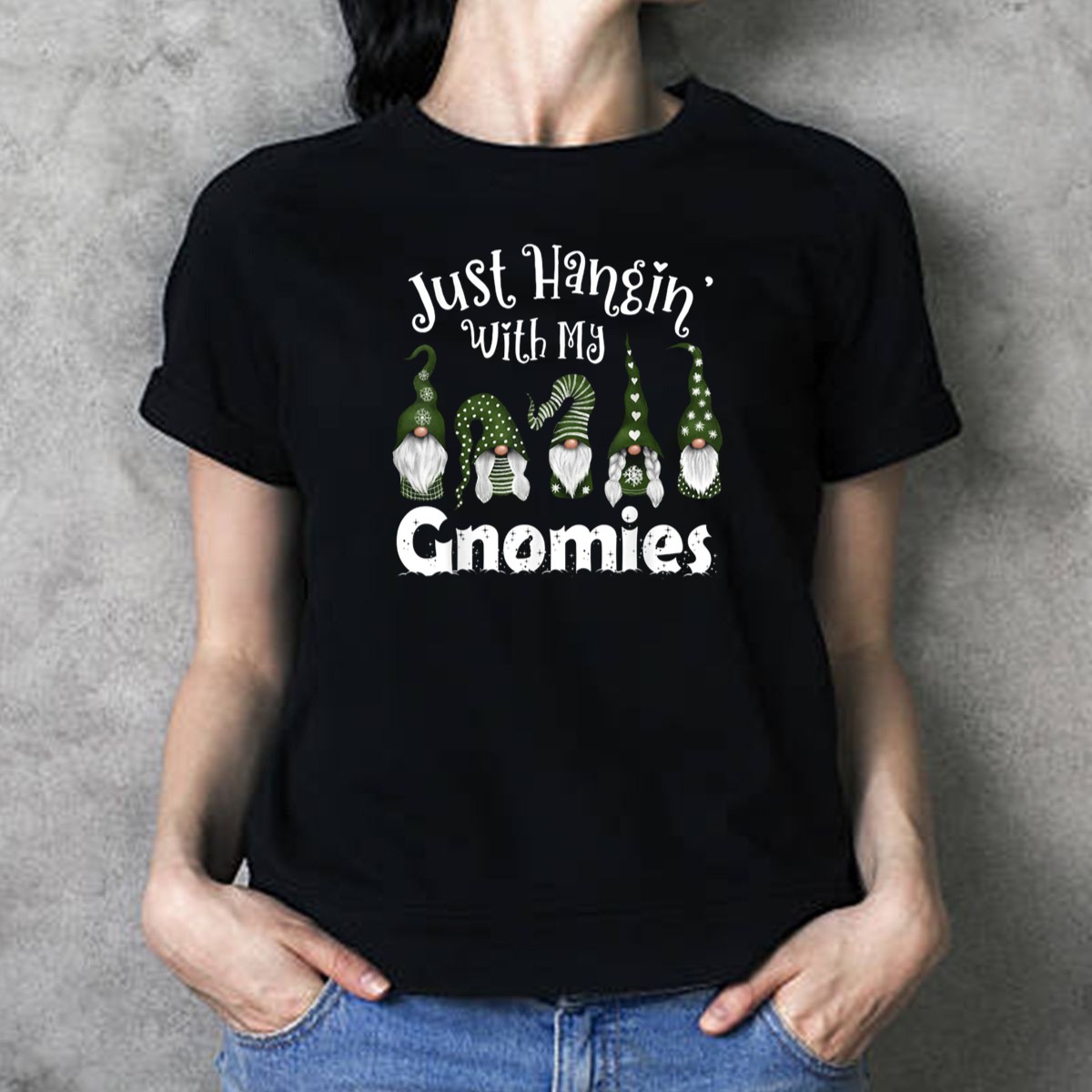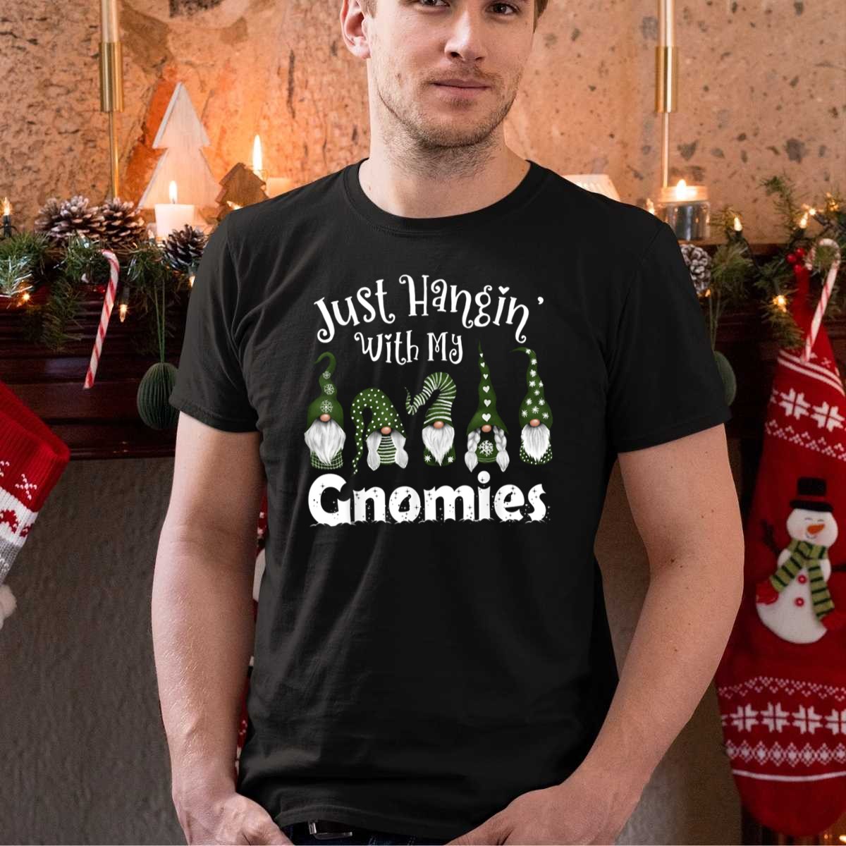 Just Hangin With My Gnomies Christmas Holiday Green Hat Garden T Shirt 1