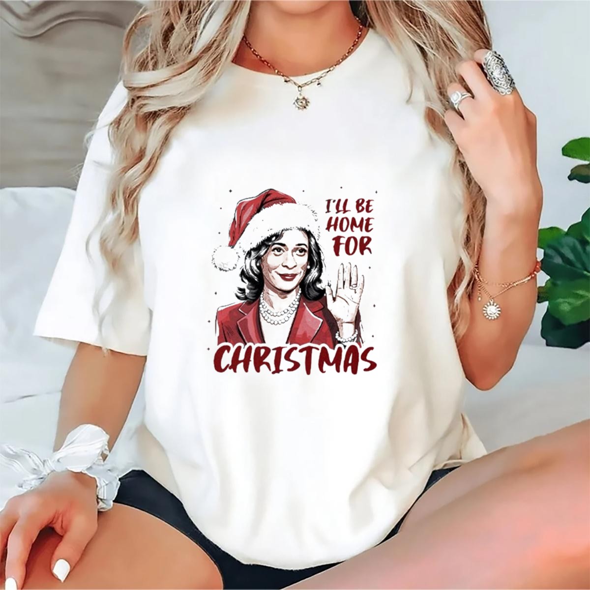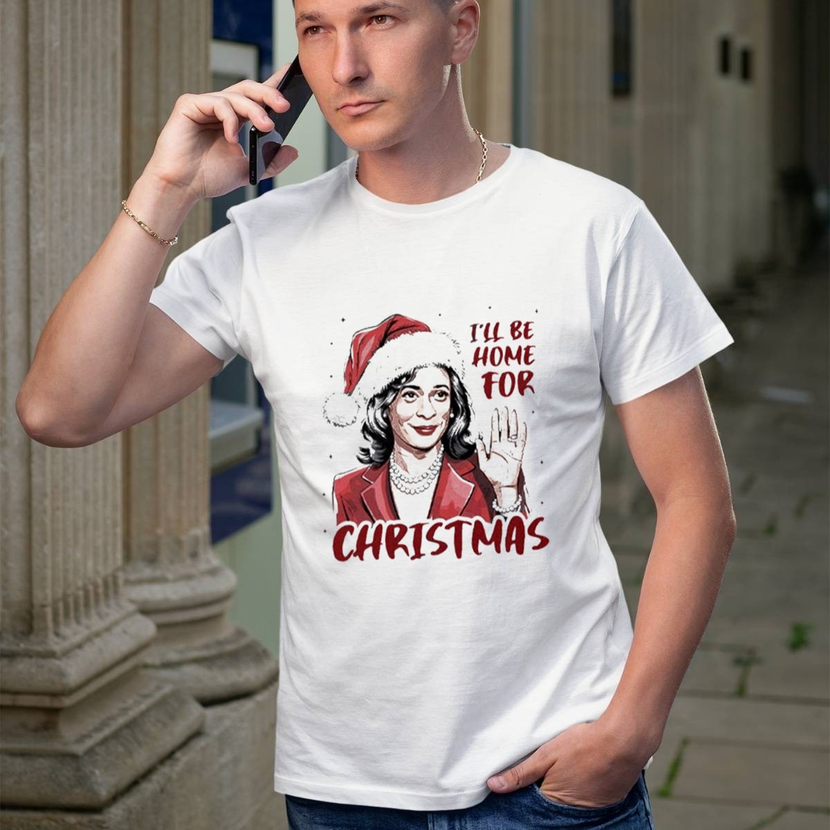 Celebrate the holiday season with our Kamala Harris “I’ll Be Home For Christmas” Santa Hat T-Shirt! Perfect for fans of the Vice President and anyone looking to spread holiday cheer, this shirt combines festive spirit with a unique political twist. Ideal for casual wear, themed events, or daily outings, this fan-made design is printed in the USA, making it a standout piece in your wardrobe.