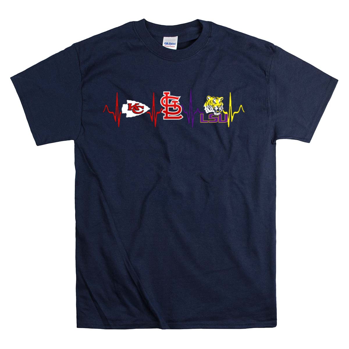 Show your love for the Kansas City Chiefs, St. Louis Cardinals, and LSU Tigers with this unique heartbeat T-shirt! Perfect for die-hard fans who want to showcase their team spirit, this shirt is ideal for casual outings, themed events, or daily wear. Made with a fan-made design that’s printed in the USA, it’s a standout piece that combines comfort with style.