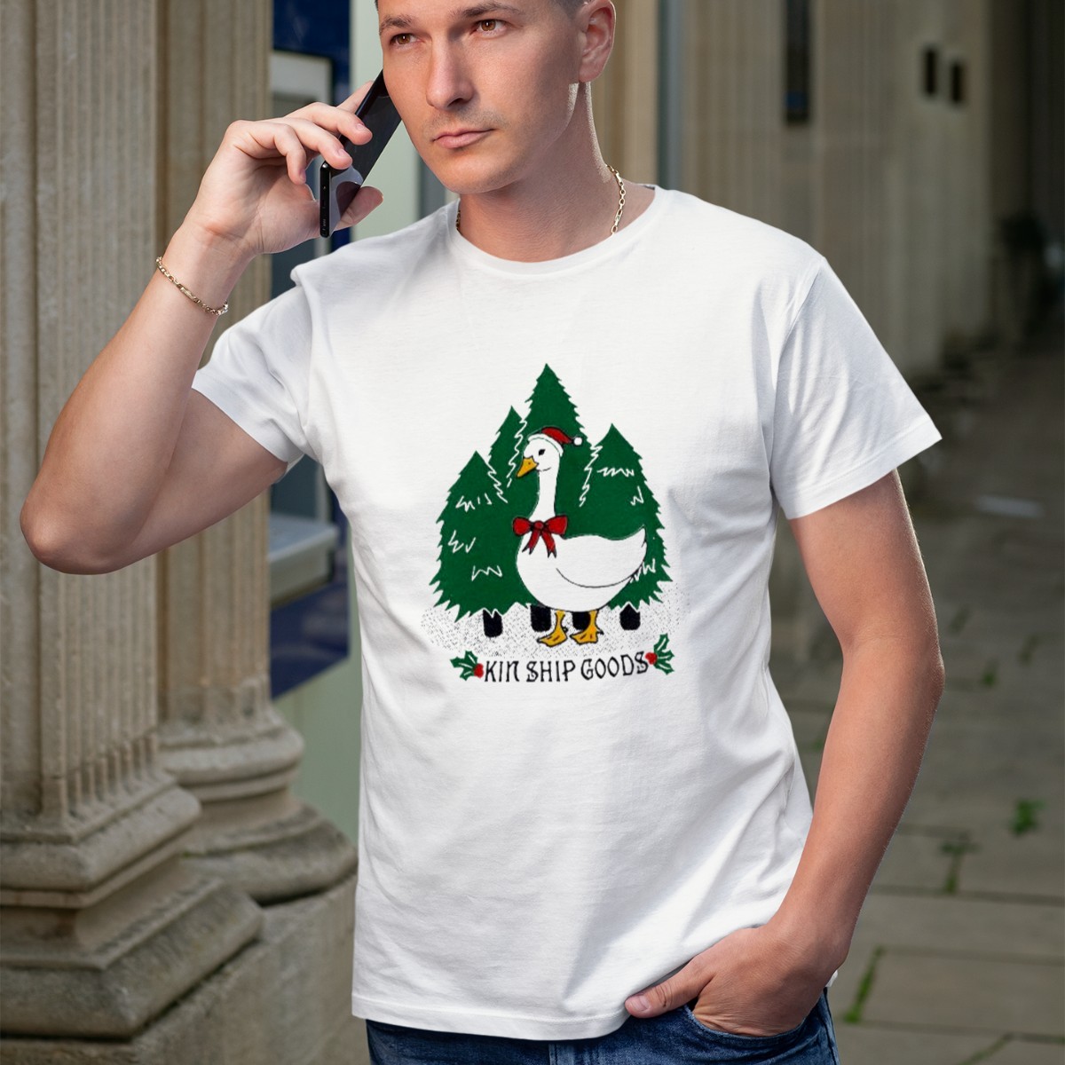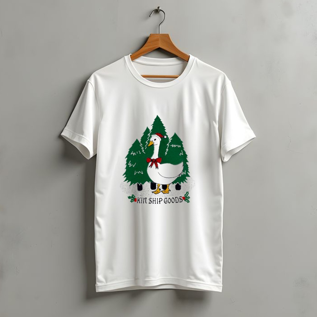 Celebrate the holiday spirit with our Kin Ship Goods Santa Claus Duck Christmas Trees Merry Christmas T-Shirt! This whimsical and fan-made design features a cheerful Santa Claus duck among festive Christmas trees, making it the perfect choice for anyone looking to spread joy during the holiday season. Ideal for casual wear, themed events, or daily festivities, this shirt combines comfort and style, ensuring you stand out while enjoying the magic of Christmas.
