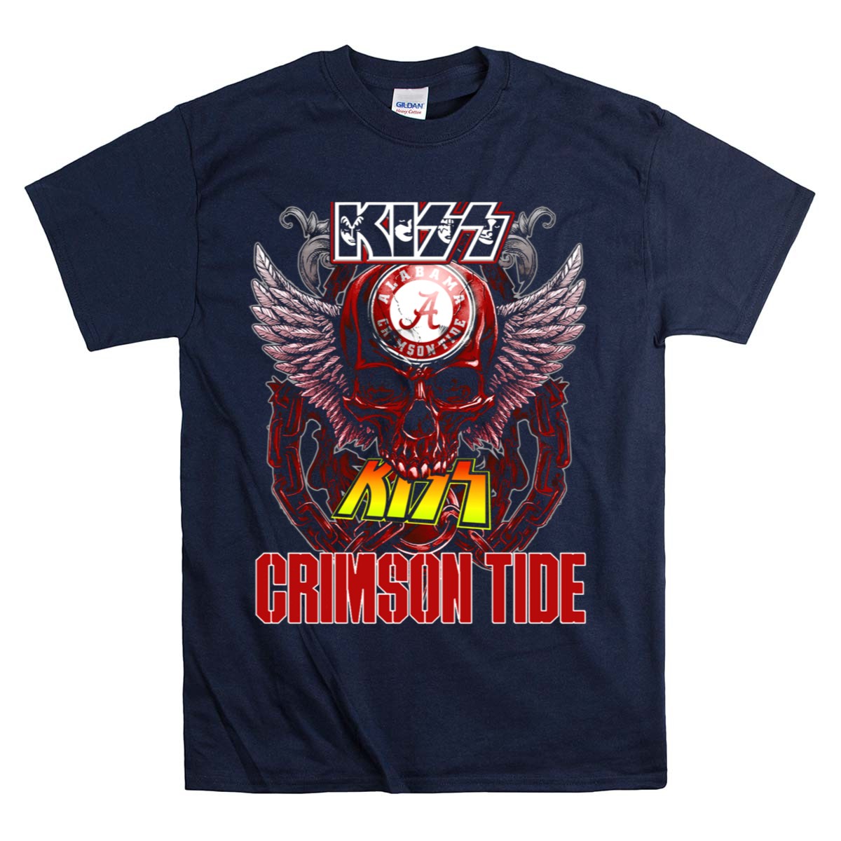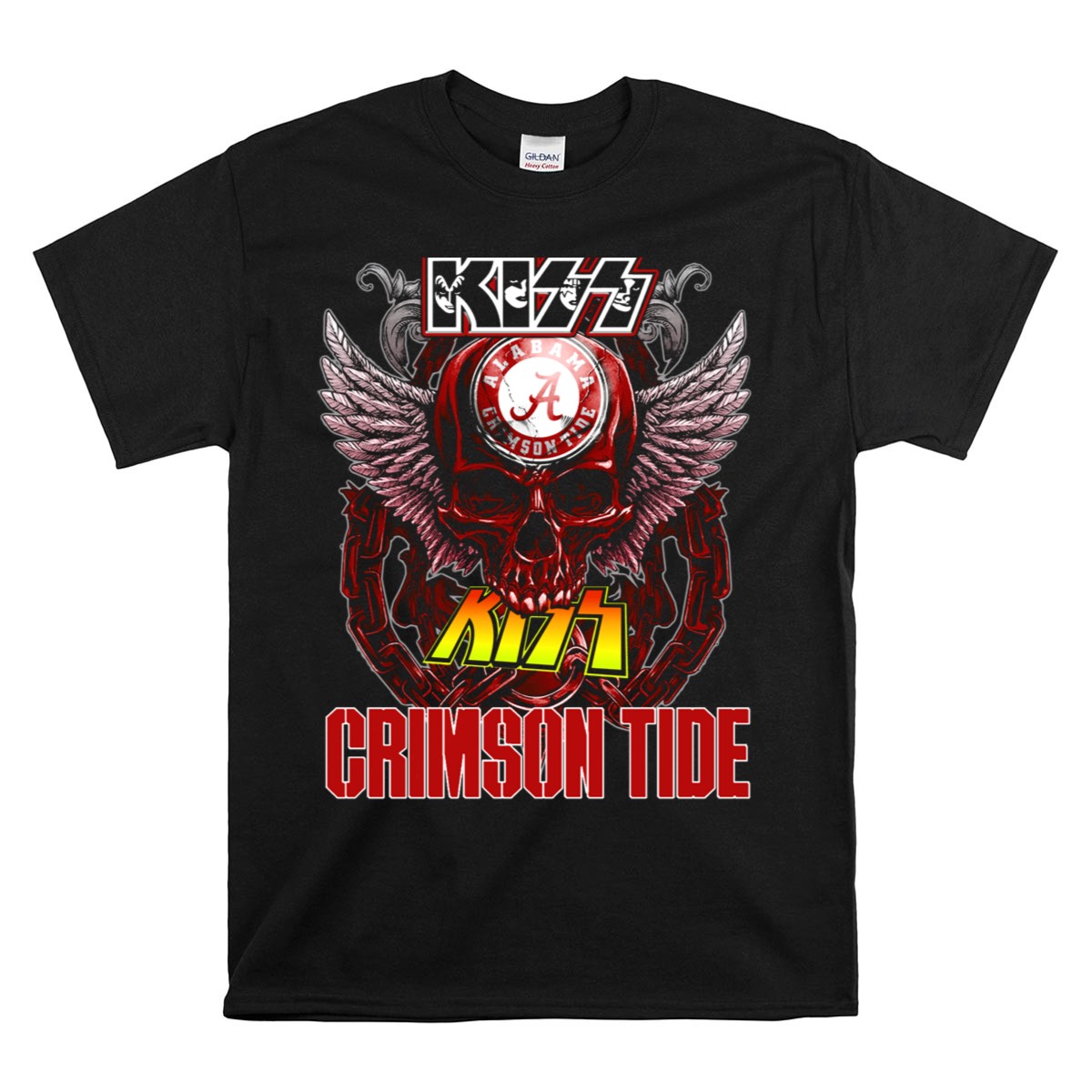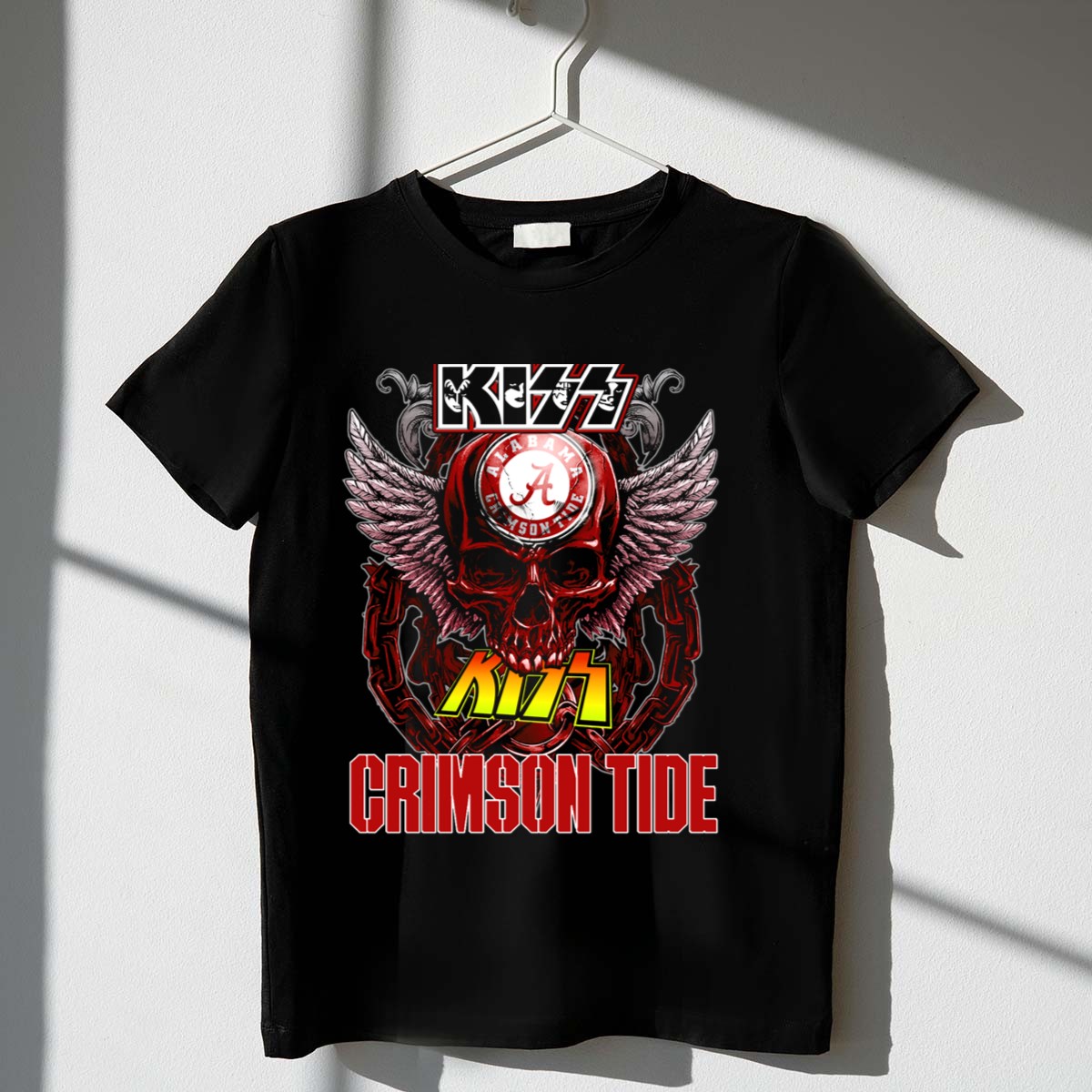 Show your fierce loyalty to the Alabama Crimson Tide with our exclusive Kiss Alabama Crimson Tide Skull Wings Chain T-Shirt! This fan-made design combines edgy style with team spirit, making it the perfect choice for die-hard fans and casual wearers alike. Whether you’re cheering from the stands, attending a themed event, or just enjoying a laid-back day, this shirt is a bold way to showcase your passion for the game. Printed right here in the USA, it’s not just a shirt; it’s a statement!