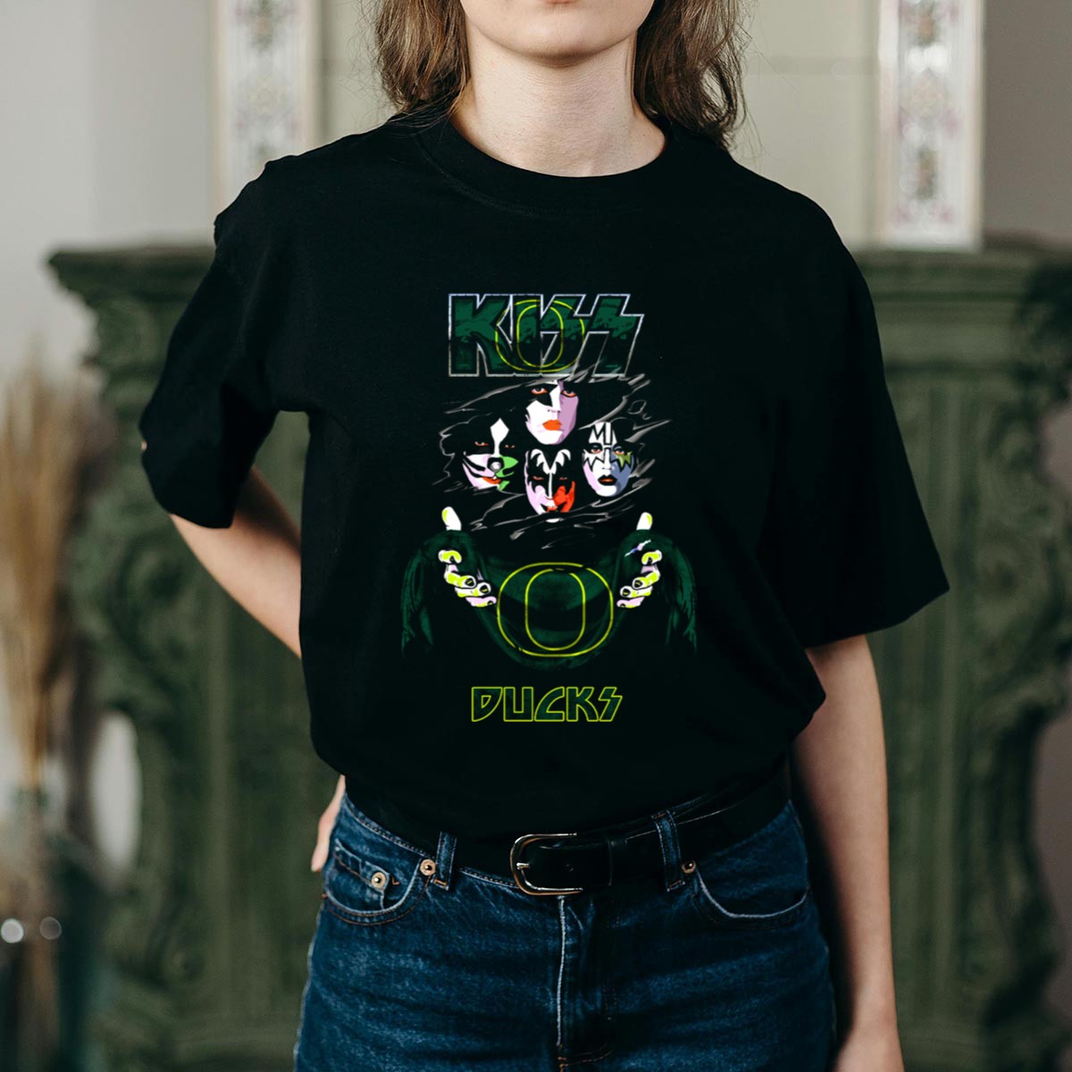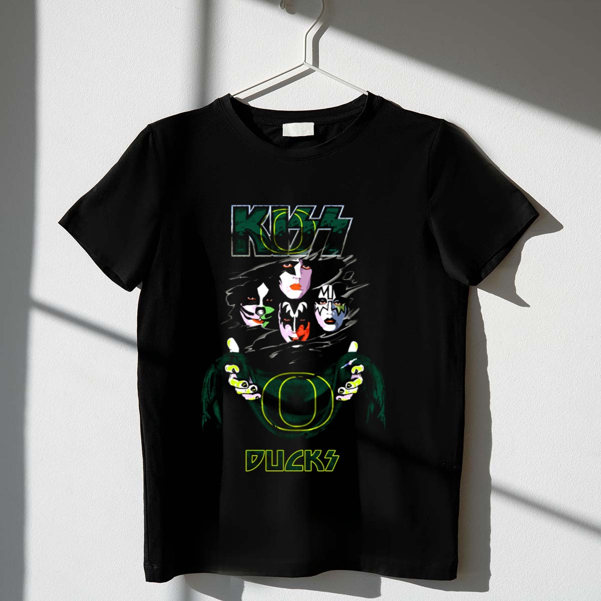 Show off your team spirit with the KISS Oregon Ducks NCAA Collaboration Retro Band Stylized T-Shirt! This unique fan-made design combines the iconic rock band KISS with the beloved Oregon Ducks, making it a perfect choice for fans who want to showcase their passion in a fun and stylish way. Ideal for casual outings, themed events, or daily wear, this shirt is a must-have for anyone looking to celebrate their love for both music and sports, all while enjoying the comfort of a classic fit.