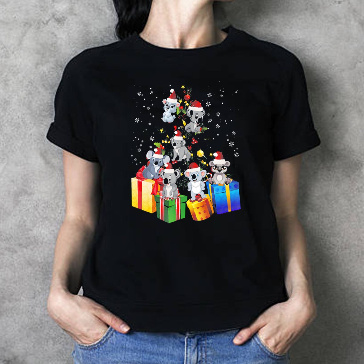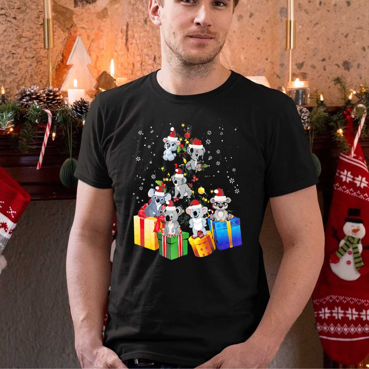 Be the first to review “Koala Christmas Pine Tree With Santa Hats And Gifts T Shirt”