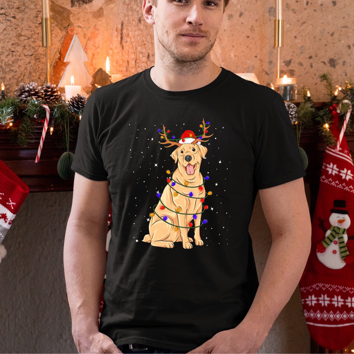 Labrador Retriever Christmas Lights Santa Hat Reindeer Antlers T-Shirt