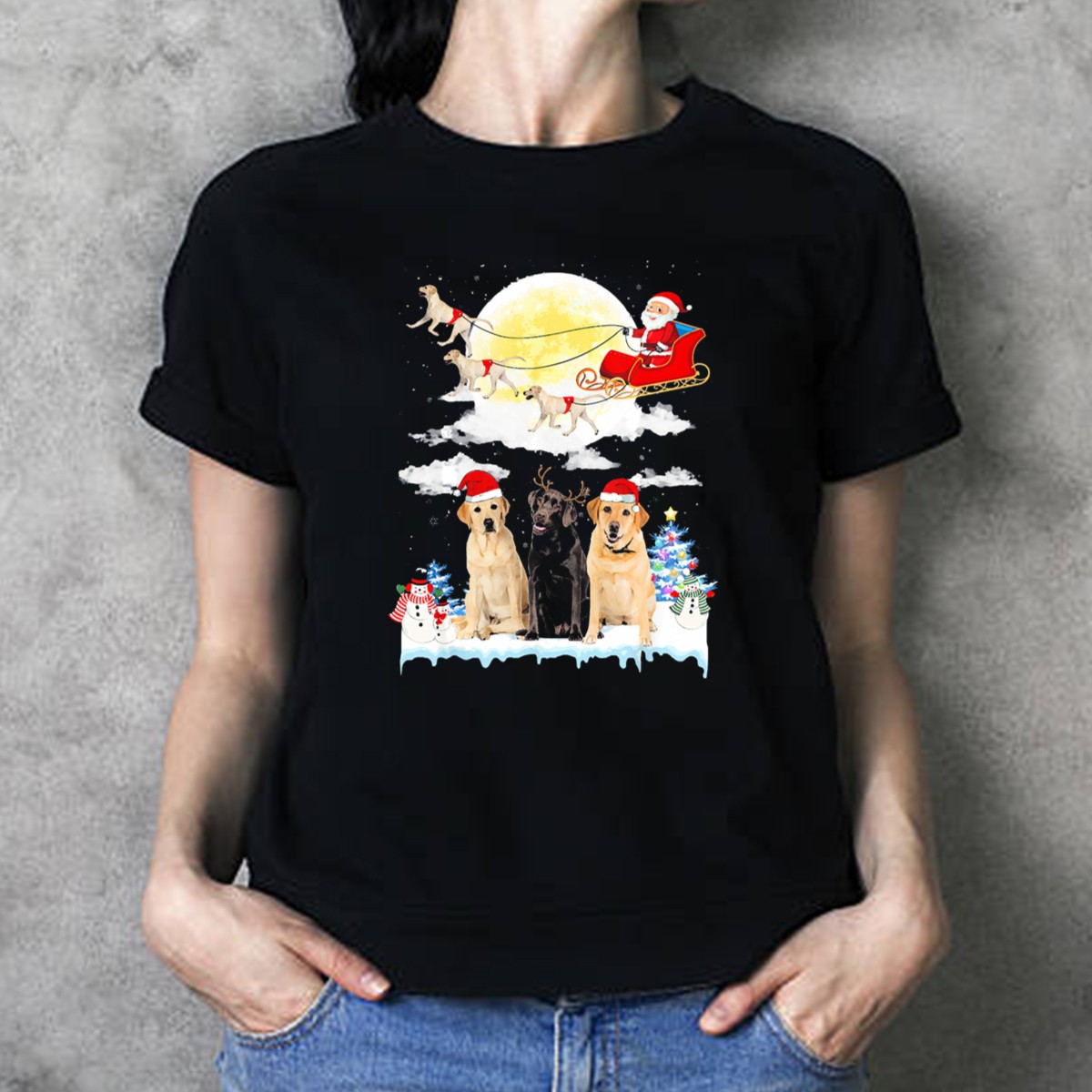 Labrador Retriever Dogs With Santa Sleigh And Christmas Tree Moon Scene T-Shirt