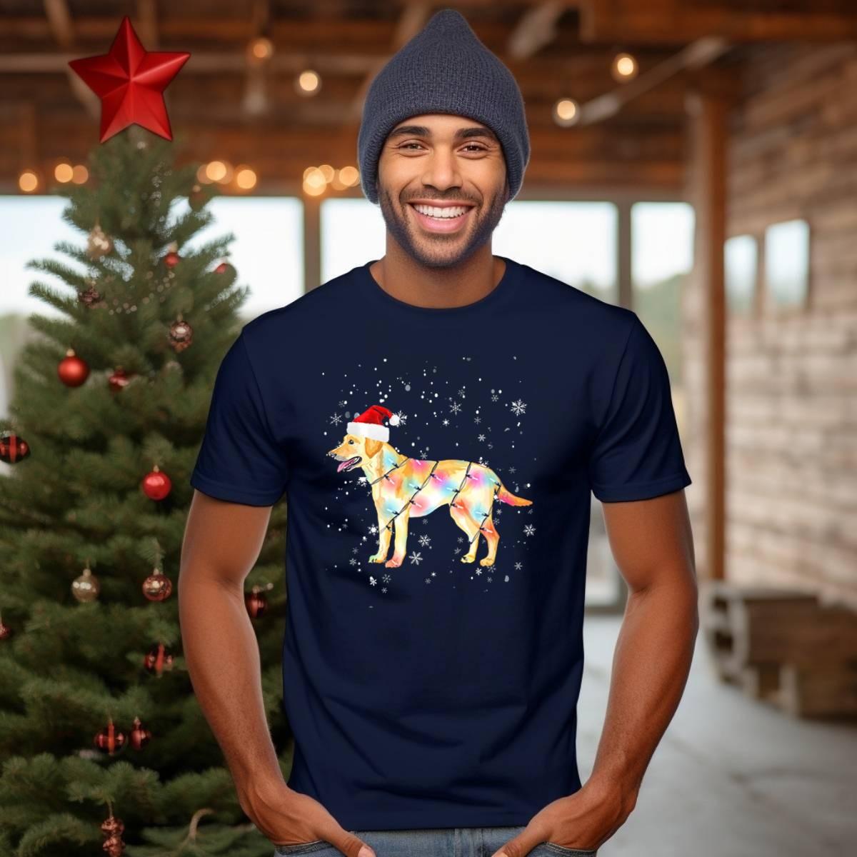 Celebrate the holiday season with our delightful Labrador Retriever T-shirt, featuring a festive pup adorned with a Santa hat and surrounded by twinkling Christmas lights and snowflakes. Perfect for dog lovers and holiday enthusiasts alike, this shirt is ideal for casual wear, themed events, or simply spreading cheer during the festive season. Made for comfort and style, it’s a unique addition to your wardrobe that showcases your love for Labradors and the magic of Christmas.