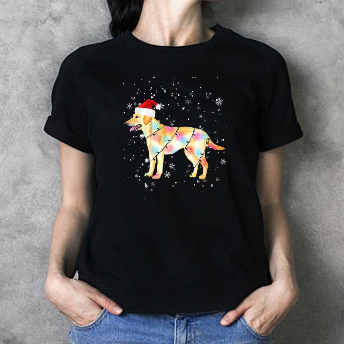 Be the first to review “Labrador Retriever With Santa Hat And Christmas Lights Surrounded By Snowflakes T Shirt”