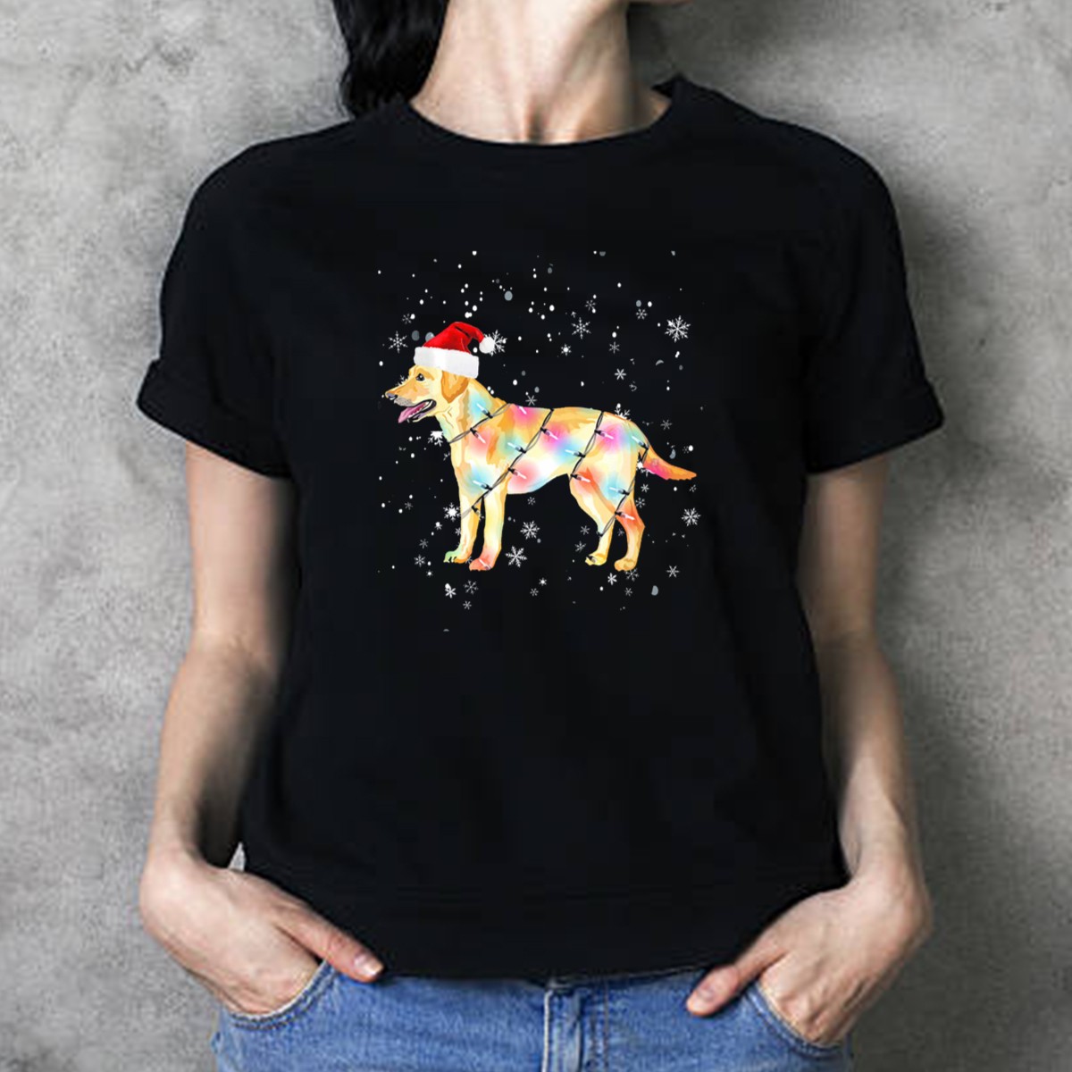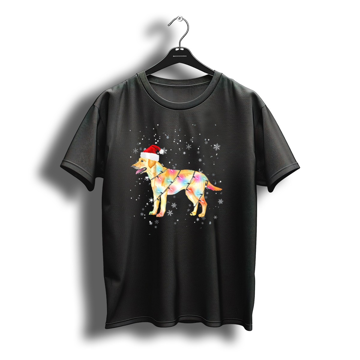 Celebrate the holiday season with our charming Labrador Retriever T-shirt, featuring a playful design of a lovable lab wearing a Santa hat and surrounded by twinkling Christmas lights and delicate snowflakes. This shirt is perfect for dog lovers and festive gatherings, making it a wonderful choice for casual wear, themed events, or just spreading holiday cheer in your everyday life. Crafted with care and printed in the USA, this fan-made design showcases your love for both your furry friends and the holiday spirit.