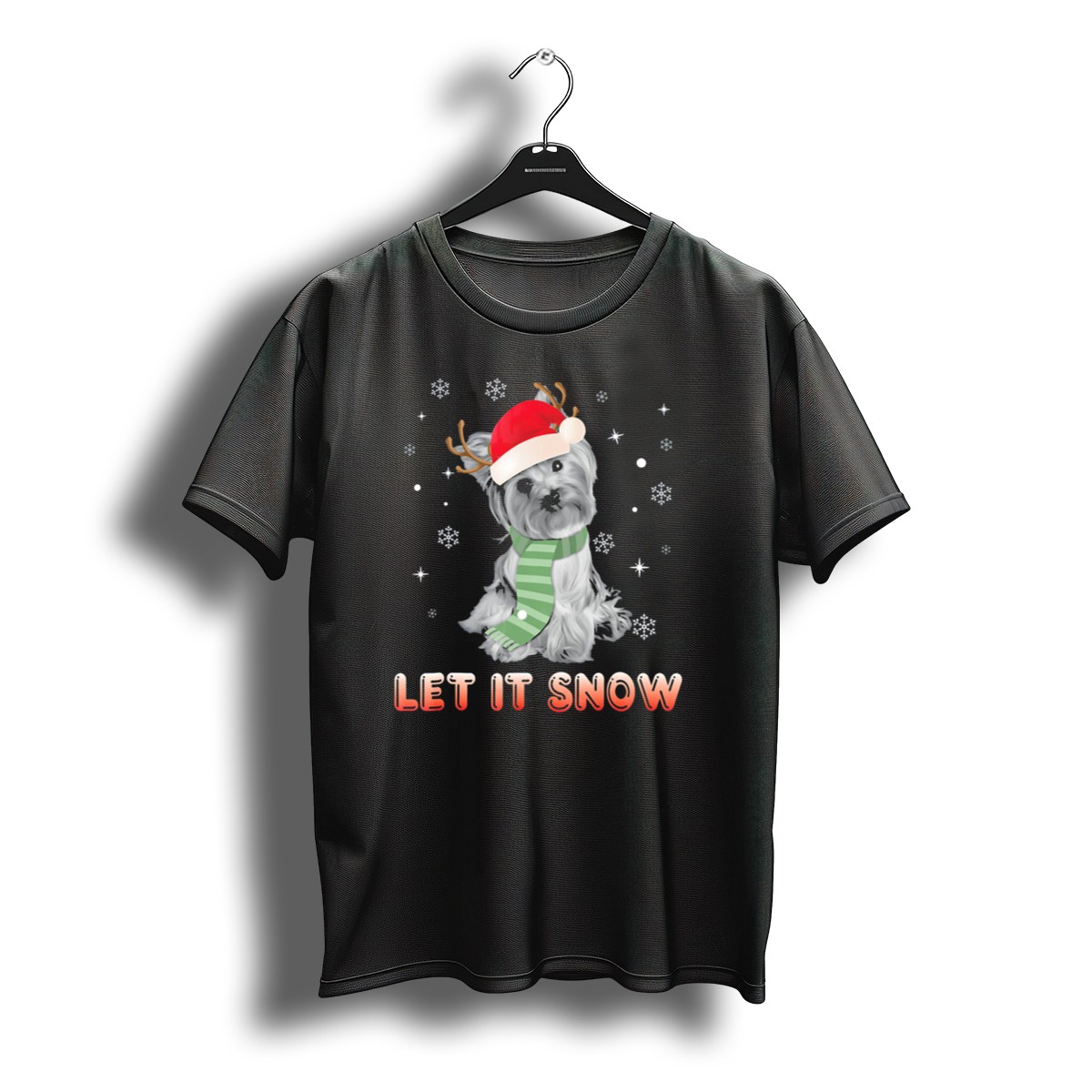 Celebrate the festive season with our “Let It Snow Yorkshire Terrier” Christmas T-Shirt, designed for dog lovers and festive enthusiasts alike! This charming tee features an adorable Yorkshire Terrier wearing reindeer antlers and a Santa hat, surrounded by whimsical snowflakes, making it the perfect addition to your holiday wardrobe. Ideal for casual wear, themed events, or simply spreading cheer during the holiday season, this fan-made design is printed in the USA, ensuring you stand out in style while showcasing your love for your furry friends.