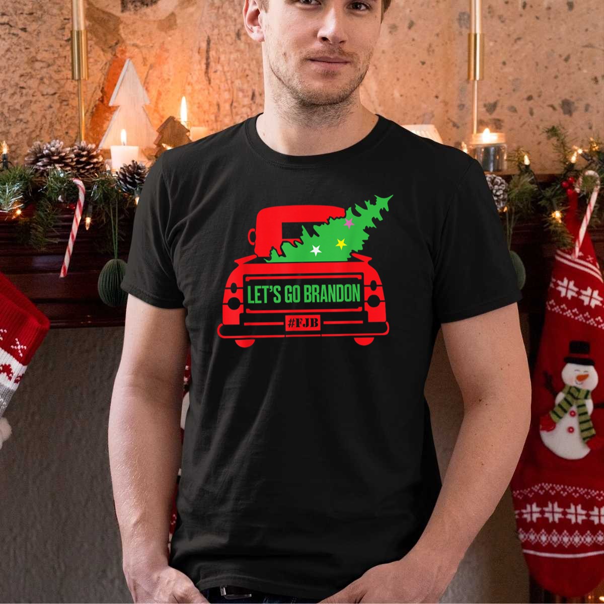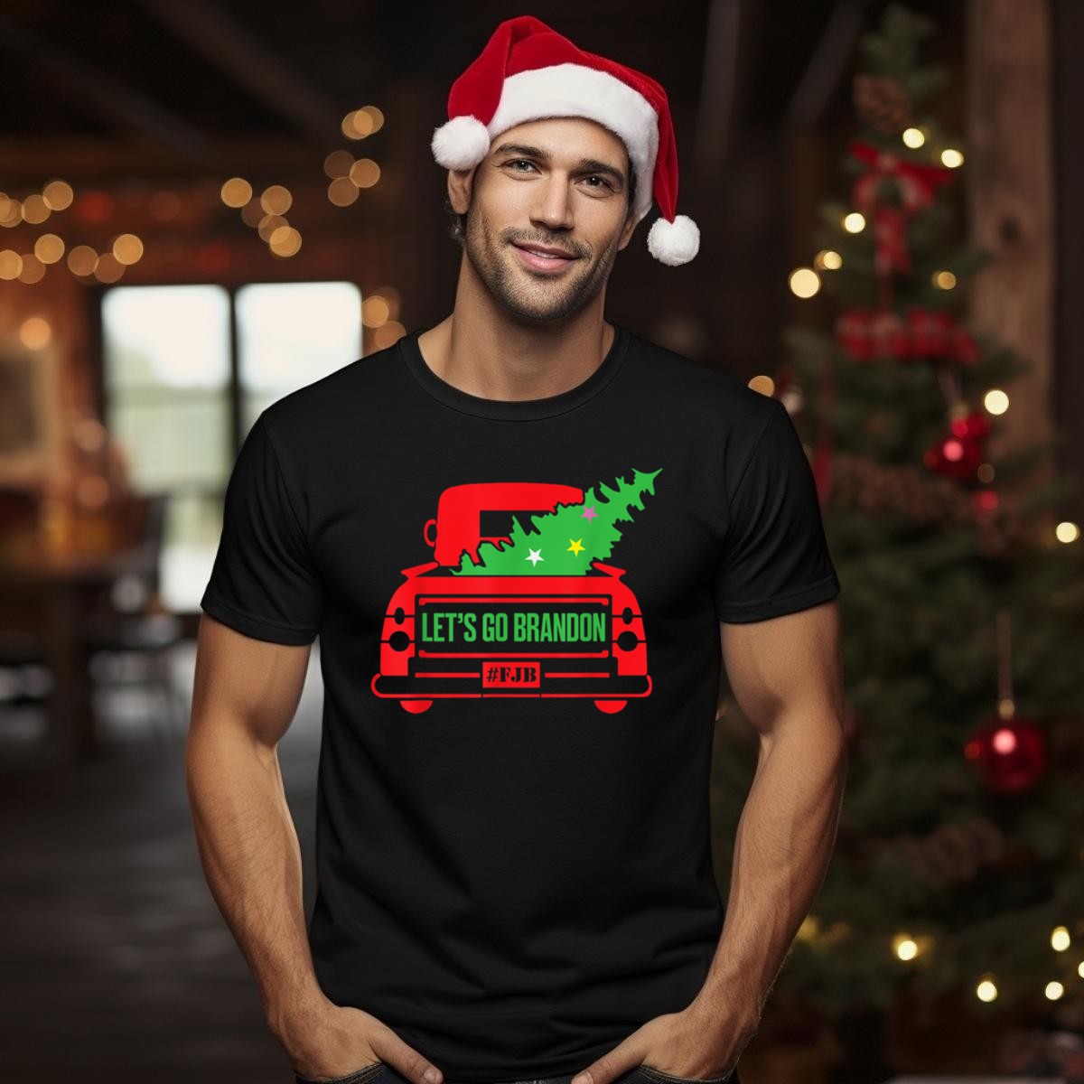 Lets Go Brandon Red Truck With Xmas Tree Fjb Christmas T Shirt