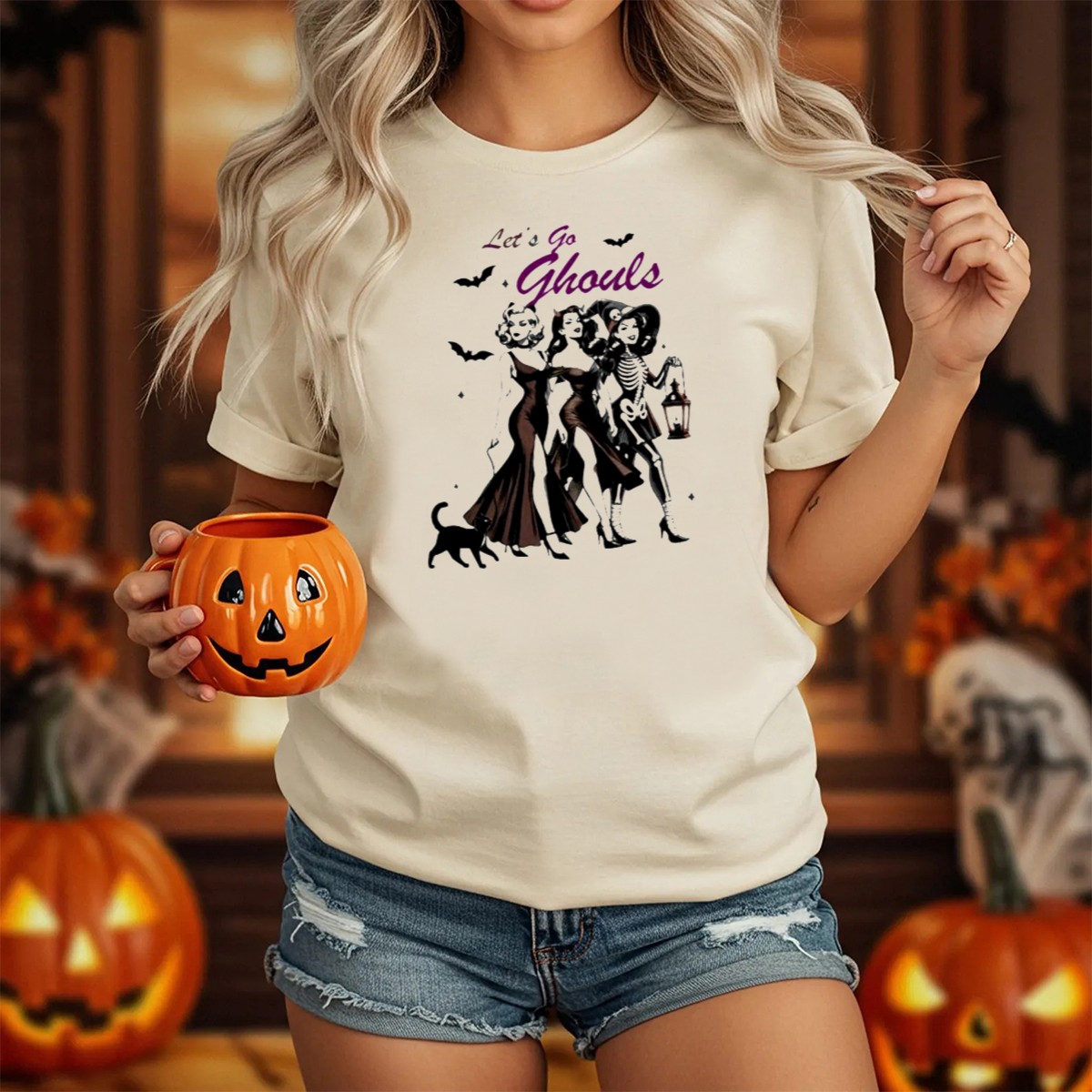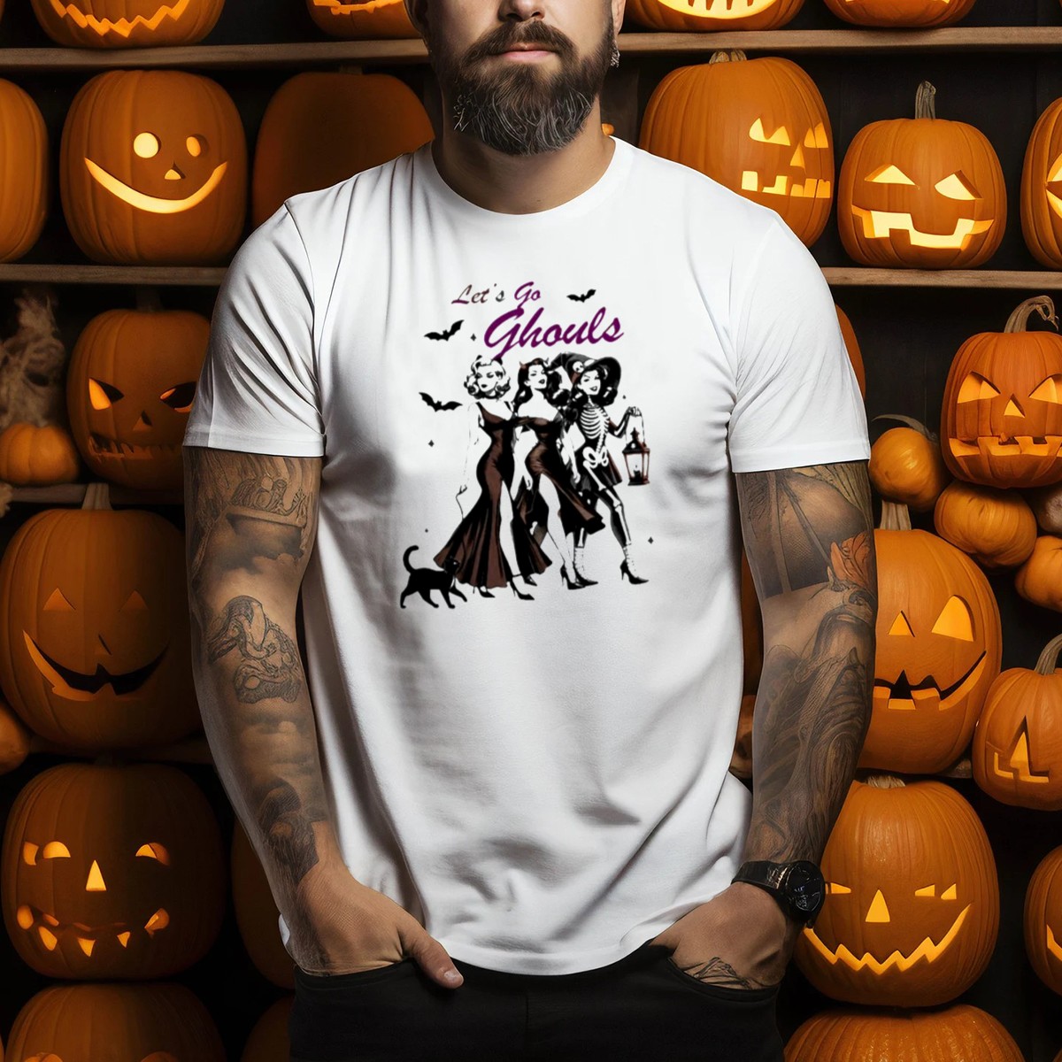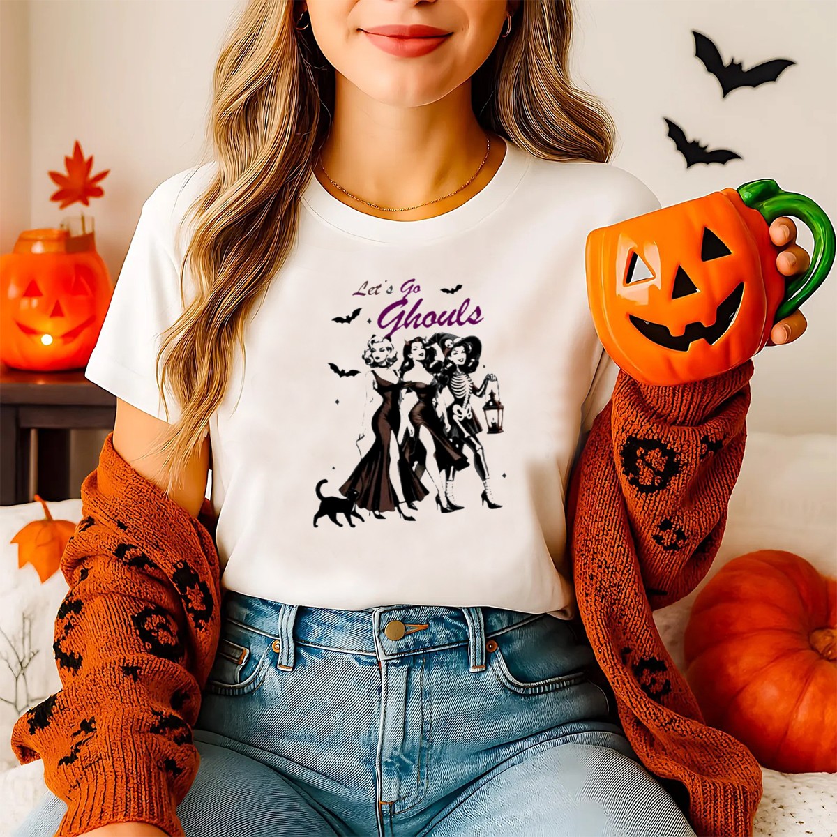 Embrace the spooky season with our “Lets Go Ghouls” Halloween T-shirt, designed for all the fun-loving girls who adore vintage costumes and playful felines! This charming shirt is perfect for casual outings, themed events, or simply expressing your love for Halloween all year round. Crafted with a soft and breathable fabric, it combines comfort with a unique, fan-made design that showcases your festive spirit while making a statement.
