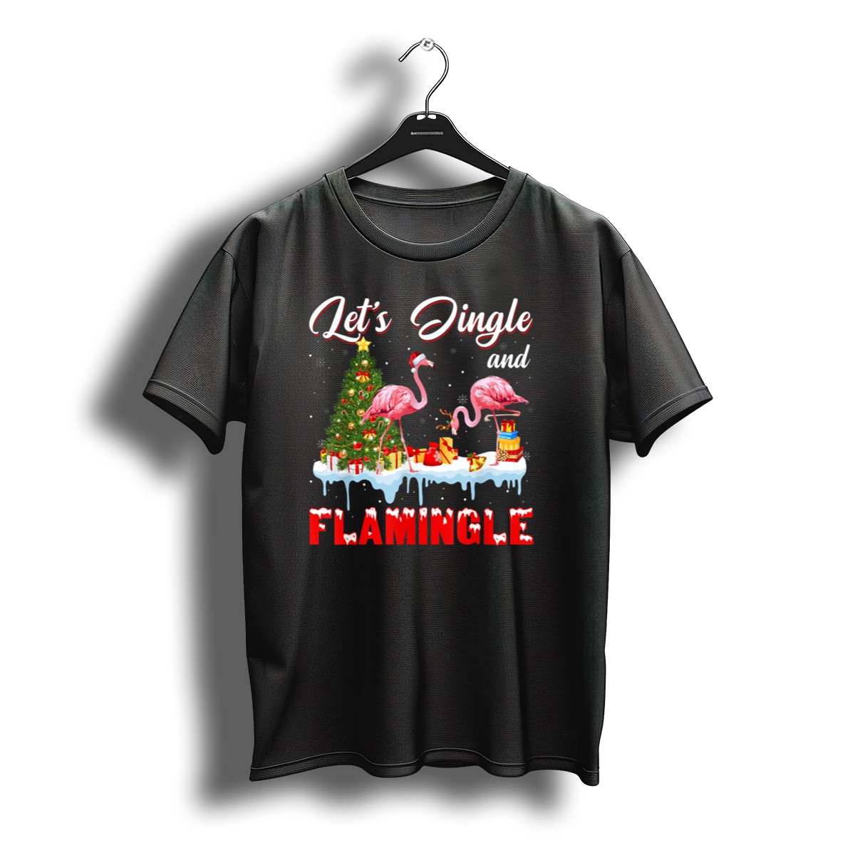 Get into the holiday spirit with our “Let’s Jingle And Flamingle” T-shirt, perfect for those who love to celebrate Christmas in a fun and unique way! Featuring a vibrant design of festive flamingos adorned with Santa hats surrounded by presents, this shirt is ideal for casual wear, themed events, and daily outings during the holiday season. Made for those who want to stand out while spreading cheer, this fan-made design is proudly printed in the USA.