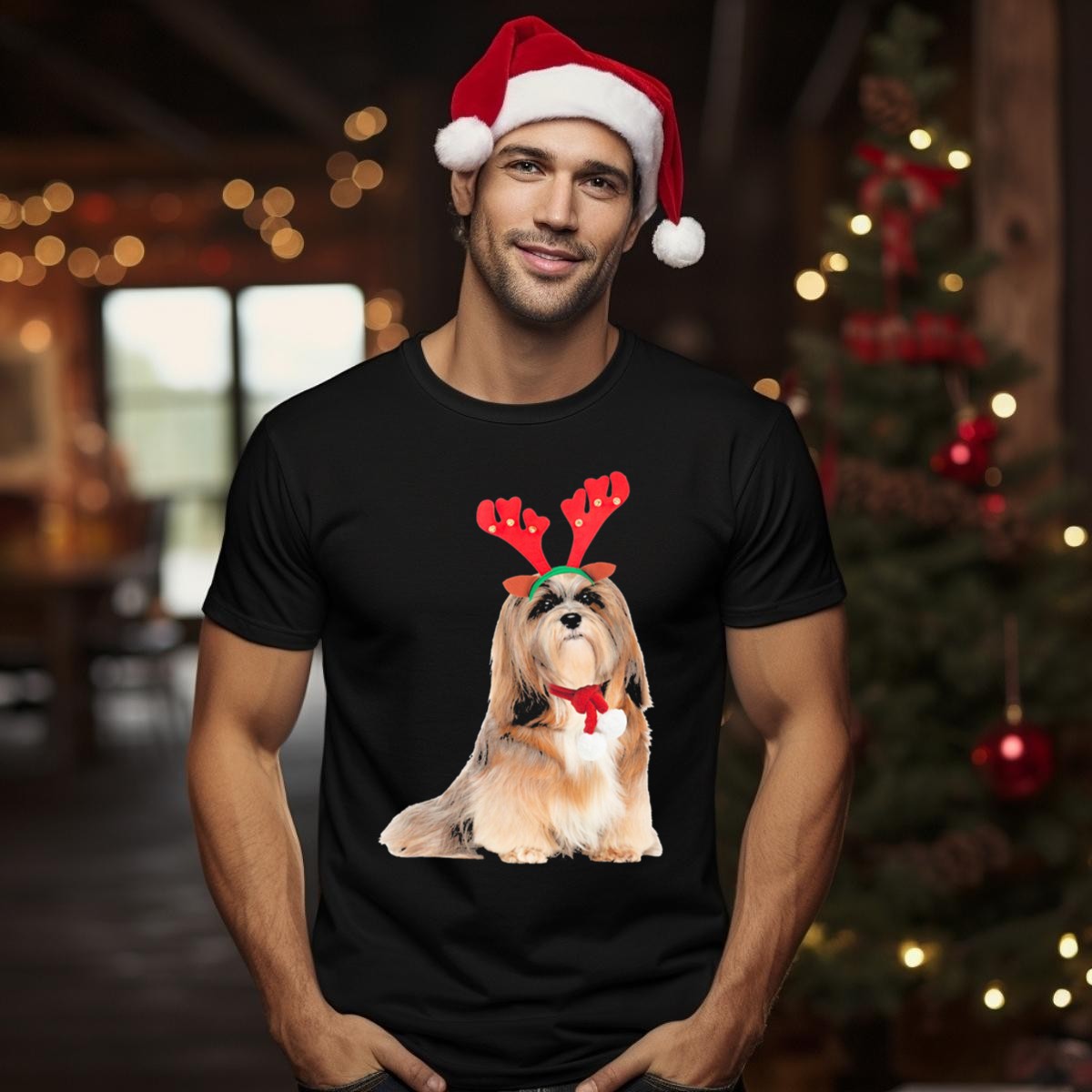 Celebrate the festive spirit with our Lhasa Apso Reindeer Antlers Christmas Dog T-Shirt! Perfect for dog lovers and their furry friends, this playful tee brings a touch of holiday cheer to casual wear, themed events, or daily outings. Made with a fan-made design printed in the USA, it showcases your love for Lhasa Apsos in a fun and unique way, making it a must-have for any pet enthusiast ready to spread some holiday joy.