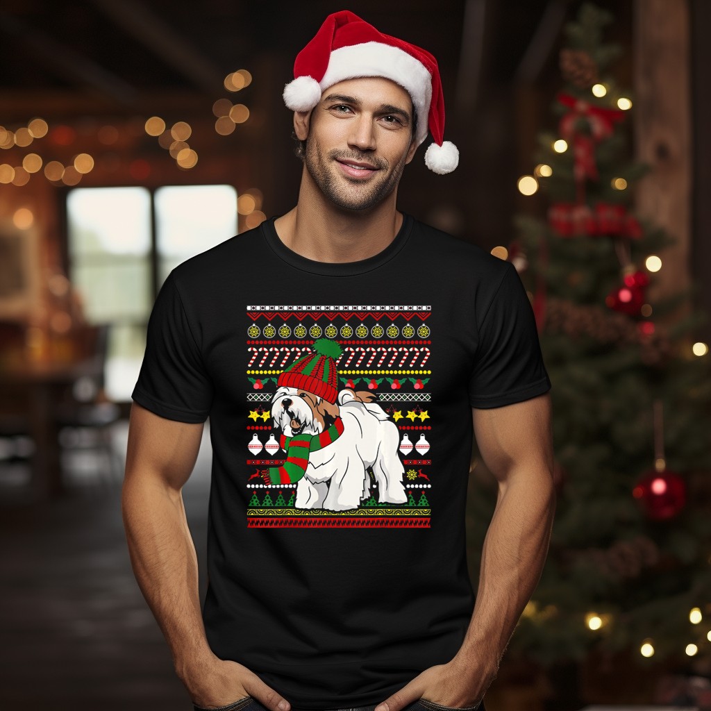 Celebrate the festive season with our Lhasa Apso Santa Claus Christmas Sweater Uglydog T-Shirt, perfect for dog lovers and those who enjoy a bit of holiday humor! This fan-made design captures the playful spirit of the holidays, making it an ideal choice for casual outings, themed events, or simply spreading cheer in your daily wear. Crafted with care in the USA, this T-shirt combines comfort with a unique design that showcases your love for Lhasa Apsos and the joy of Christmas.
