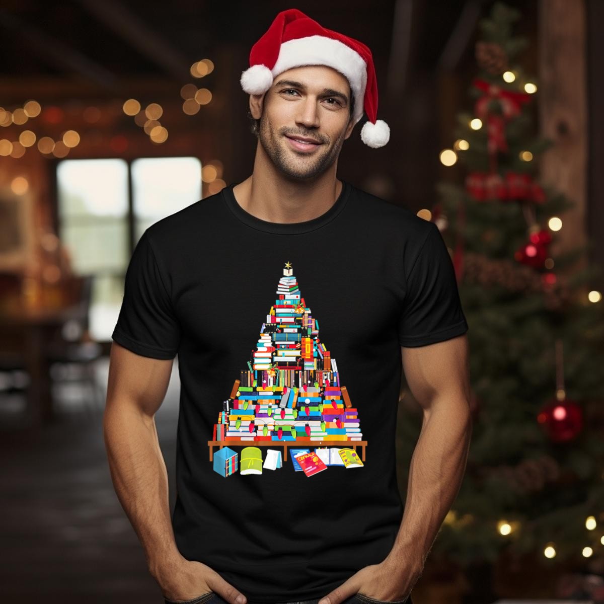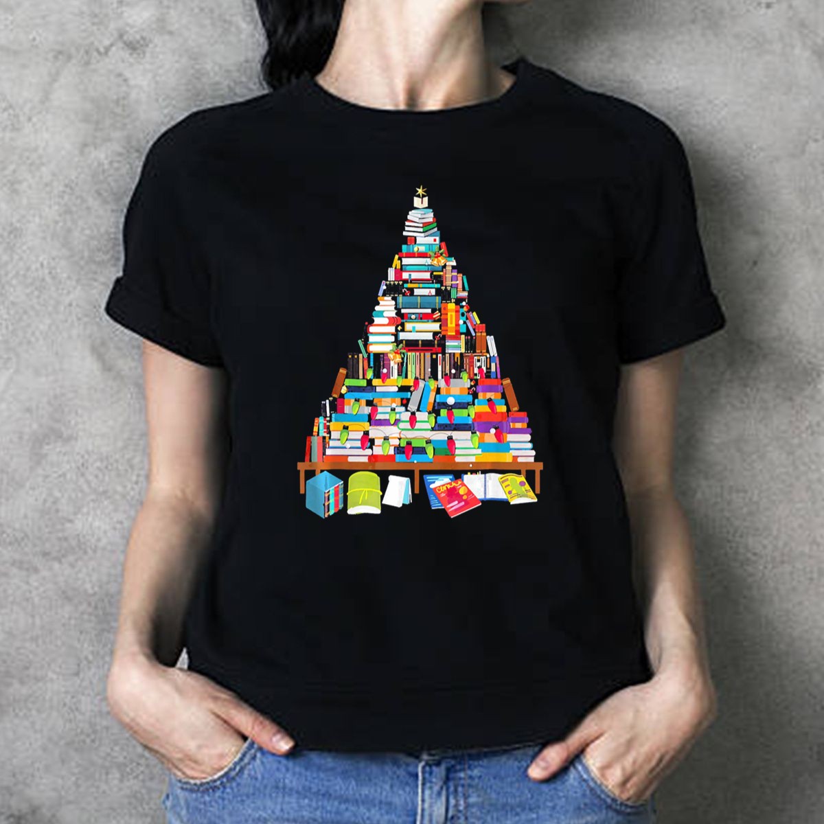 Be the first to review “Librarian Christmas Books Tree With Stacked Book Decorations And Festive Holiday Lights T Shirt”