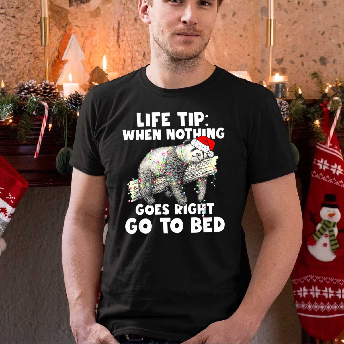 Introducing our delightful “Life Tip: When Nothing Goes Right, Go To Bed” Funny Panda T-Shirt, perfect for those who appreciate humor and a cozy vibe! This fan-made design features an adorable panda wrapped in Christmas lights, making it an ideal choice for casual wear, themed events, or just lounging at home. Crafted for comfort and style, this shirt is a whimsical reminder that sometimes, a little humor is all you need to brighten your day.