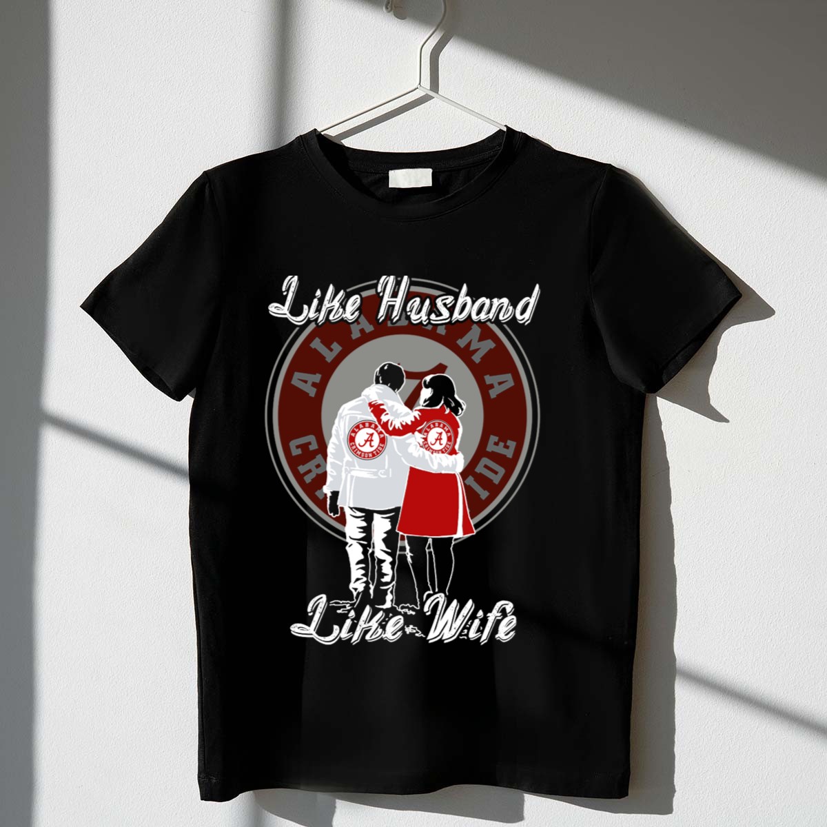 Celebrate your love for both each other and the Alabama Crimson Tide with our “Like Husband Like Wife” T-Shirt. This fan-made design is perfect for couples who want to showcase their team spirit together. Whether you’re attending a game, enjoying a themed event, or simply going about your daily activities, this stylish and comfortable tee is the ideal choice for any casual occasion. Printed with care in the USA, it combines quality and passion for football in one unique piece.