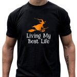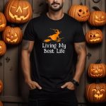 Embrace the spirit of Halloween with our “Living My Best Life” T-shirt featuring a whimsical design of a witch soaring on her broomstick. Perfect for those who want to celebrate the season in style, this shirt is ideal for casual wear, themed events, or simply expressing your love for all things spooky. Made for comfort and durability, it’s a must-have for every witchy wardrobe!