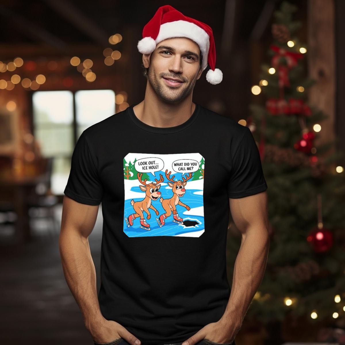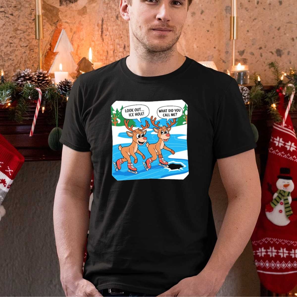 Embrace the holiday spirit with our “Look Out Ice Hole” Ice Skating Reindeer Christmas Humor T-Shirt! This fun and festive tee is perfect for anyone who loves a good laugh and wants to showcase their holiday cheer. Ideal for casual gatherings, themed events, or simply lounging around during the festive season, this shirt combines humor and comfort in one delightful package. Made right here in the USA, it’s a fan-made design that will surely turn heads and spark conversations!