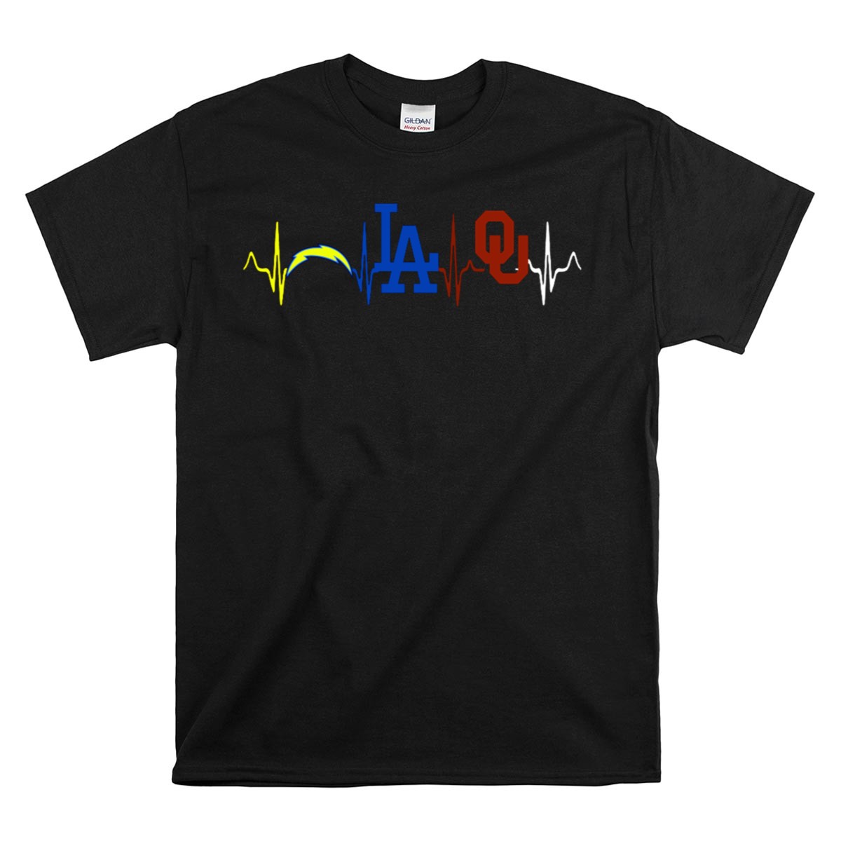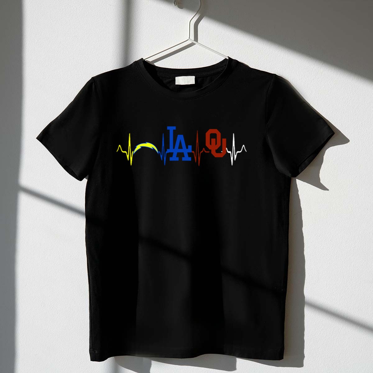 Los Angeles Chargers Dodgers Oklahoma Sooners Heartbeat T-Shirt