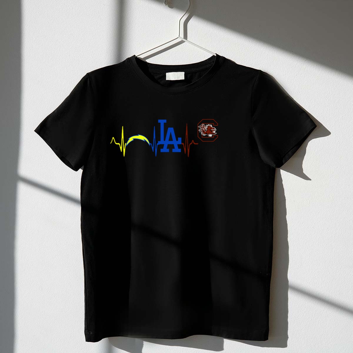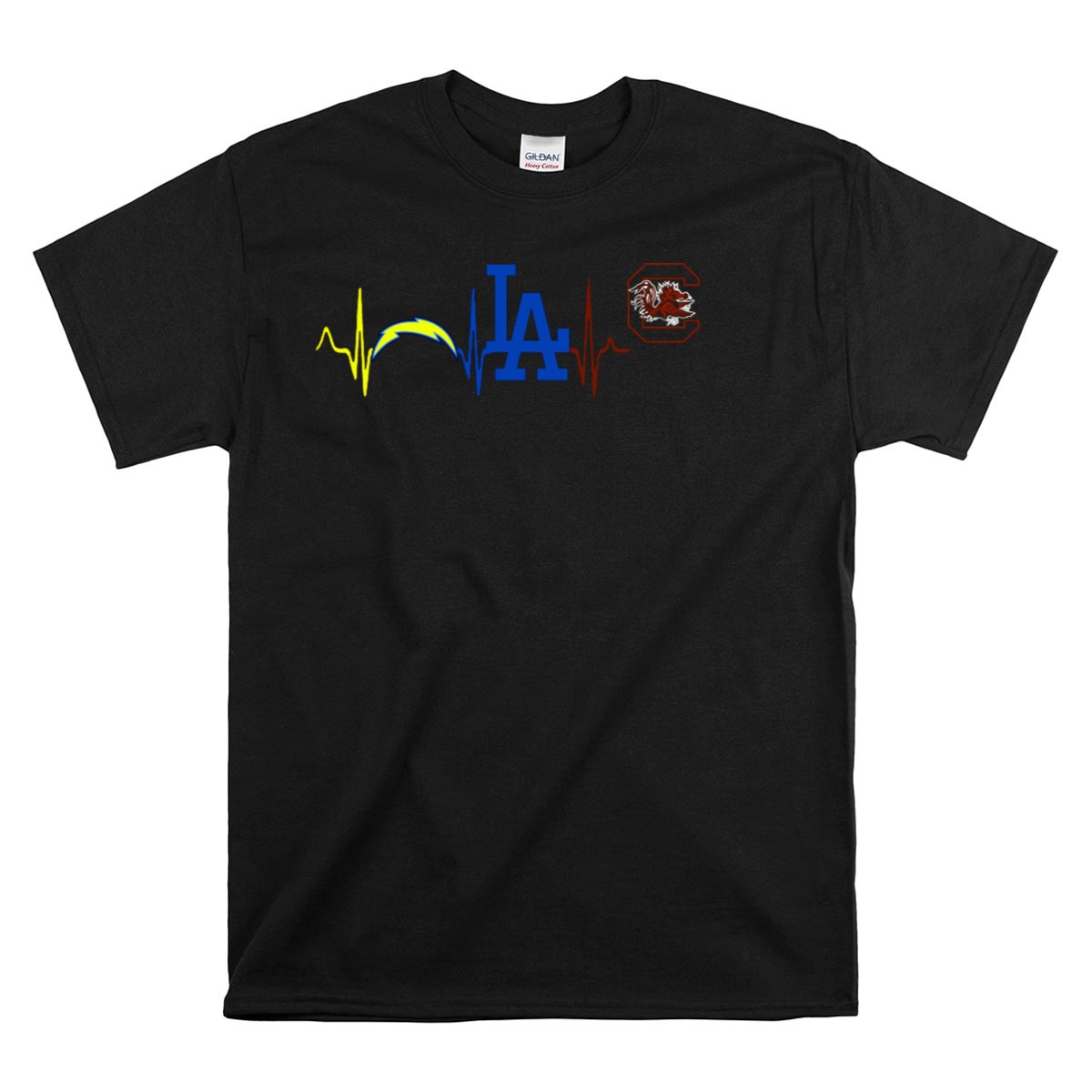 Show your passion for sports with our Los Angeles Chargers Dodgers South Carolina Gamecocks Heartbeat T-Shirt! This fan-made design is perfect for die-hard fans who want to express their love for multiple teams in a stylish way. Ideal for casual outings, themed events, or just lounging at home, this shirt combines comfort and team spirit, making it a must-have for any sports enthusiast. Proudly printed in the USA, it’s designed to keep you looking great while cheering for your favorite teams!
