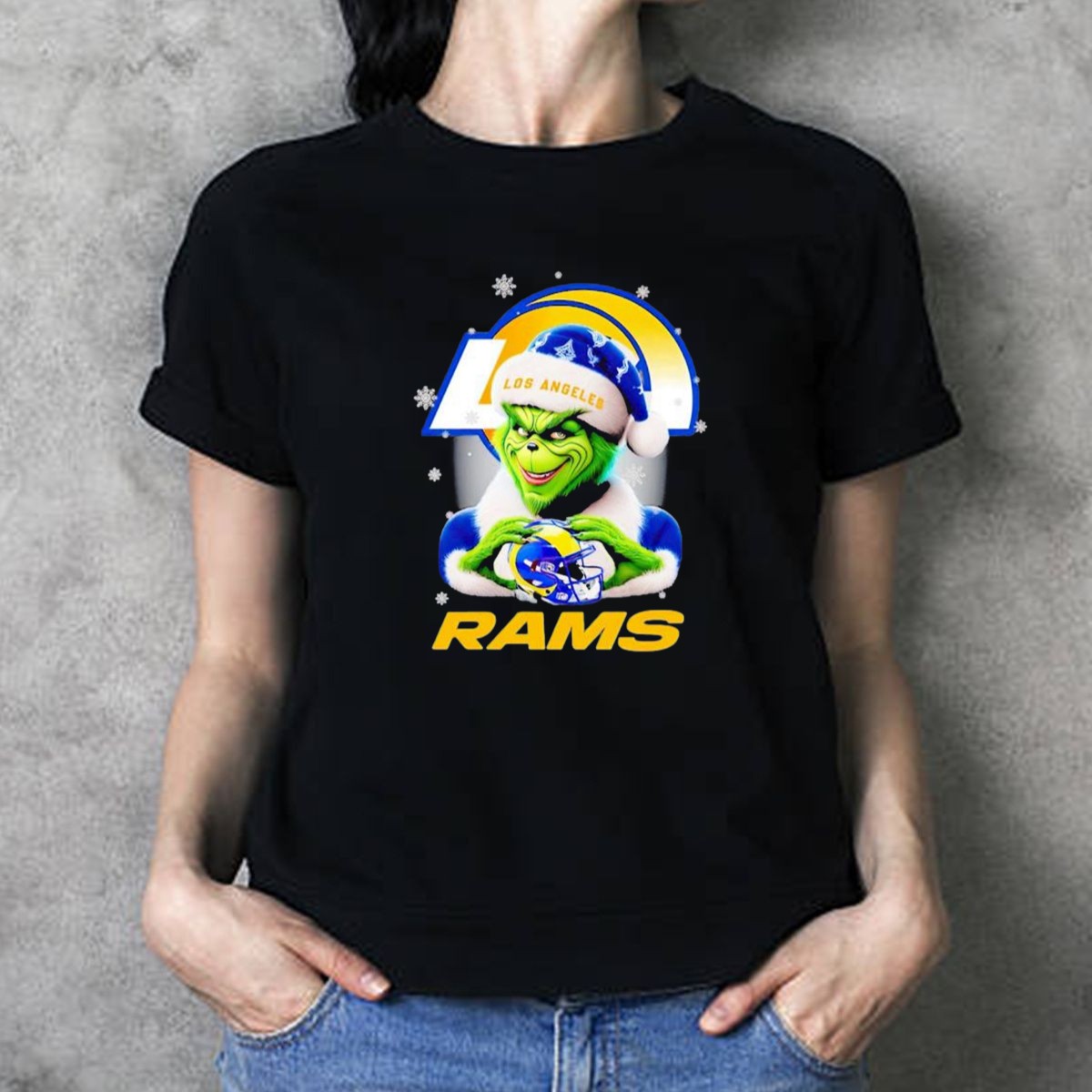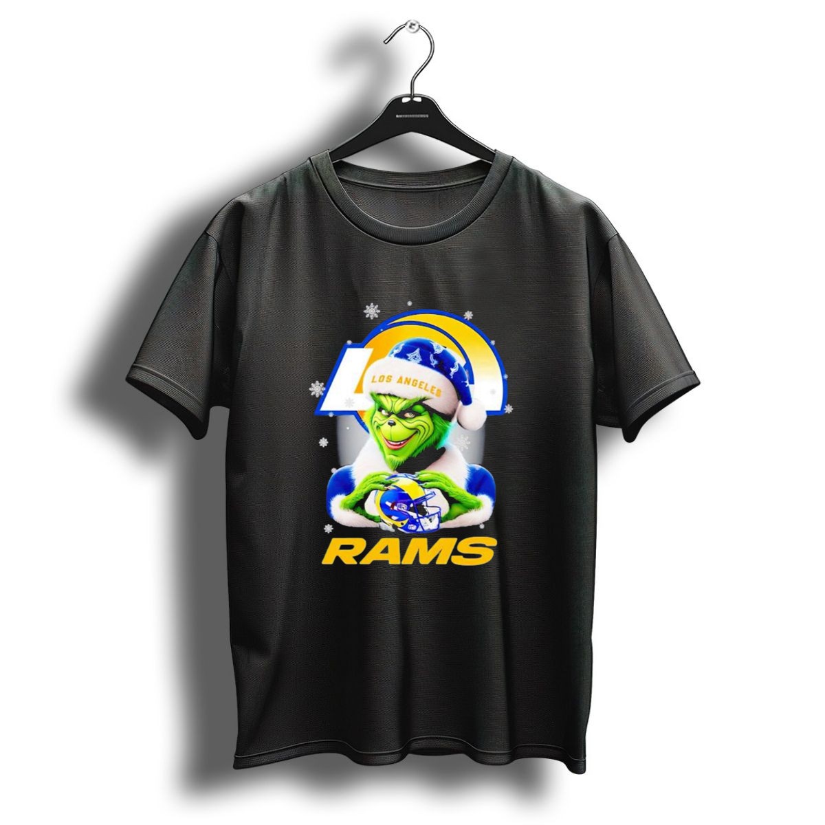 Get into the holiday spirit with our Los Angeles Rams Christmas Grinch Holding Helmet T-Shirt! Perfect for die-hard Rams fans and anyone who loves a fun twist on holiday apparel, this shirt features a playful design that captures the essence of Christmas cheer mixed with football fanaticism. Whether you’re attending a themed event, cheering for your team during the game, or just enjoying casual outings with friends and family, this shirt is sure to make you stand out in style. Made in the USA, this fan-made design is not only unique but also showcases your team pride all season long!