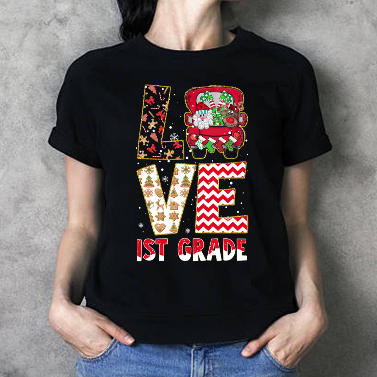 Celebrate the joy of teaching and the festive spirit with our Love 1st Grade Christmas T-Shirt! Perfect for dedicated teachers and fans of holiday cheer, this shirt features a delightful design that captures the magic of Christmas, complete with reindeer, candy, and gingerbread themes. Ideal for casual wear, themed events, or simply spreading holiday happiness, this fan-made shirt is printed right here in the USA for a touch of local pride.