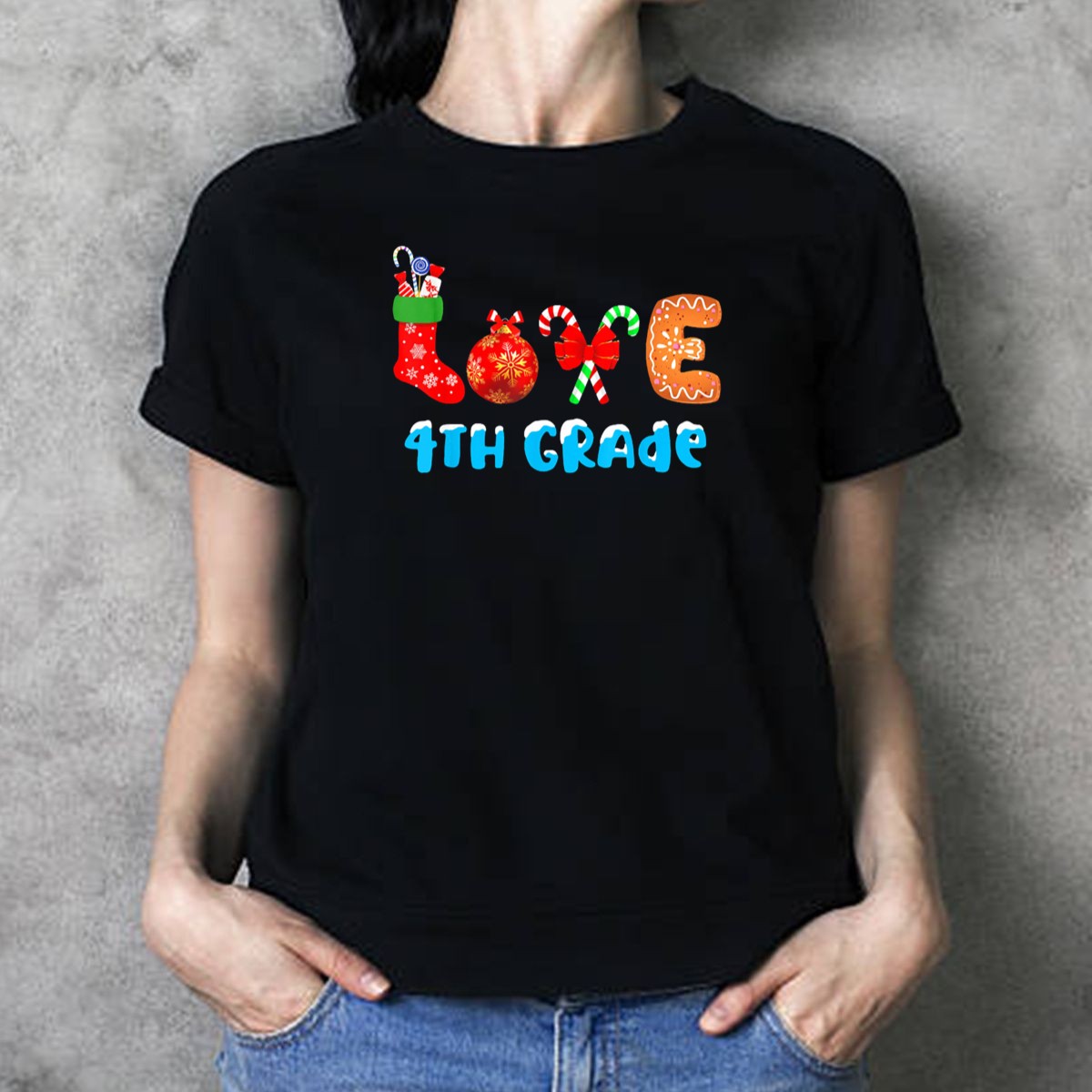 Celebrate the holiday season and show your appreciation for your favorite 4th grade teacher with our charming “Love 4Th Grade Teacher” T-shirt! This festive design features playful elements like candy canes and gingerbread, making it the perfect gift for teachers or an ideal outfit for themed events. Crafted for comfort and style, this shirt is a delightful addition to any casual wardrobe, ensuring that you stay cozy and festive throughout the season!