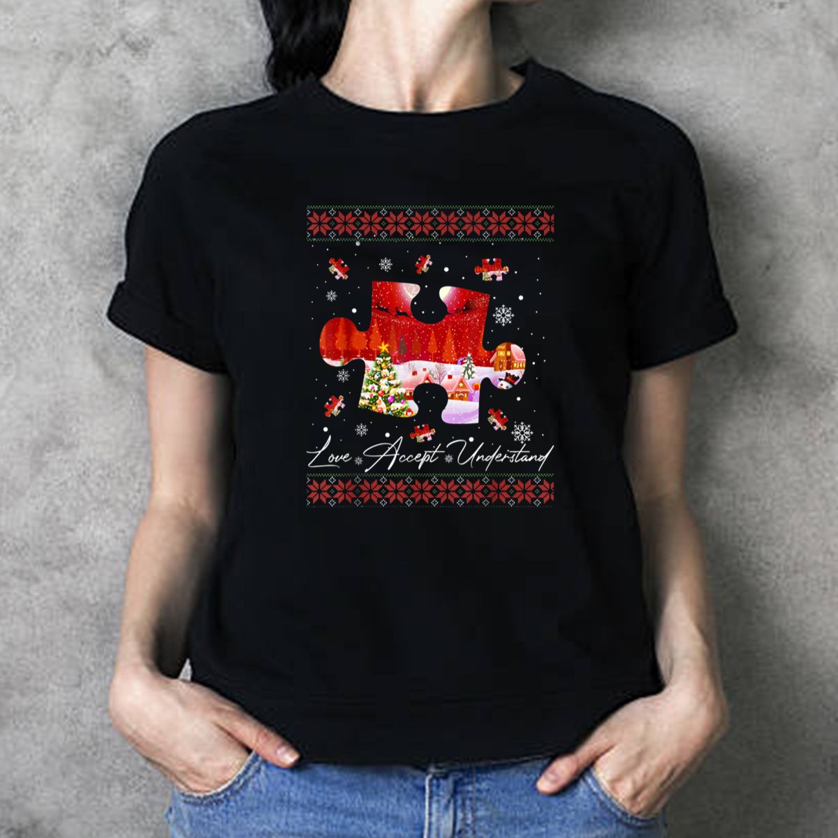 Celebrate the spirit of inclusion and awareness with our Love Accept Understand Autism Awareness Christmas Puzzle Snowflakes T-Shirt. Perfect for individuals and families who embrace the beauty of diversity, this shirt is an ideal choice for casual outings, themed events, or simply spreading awareness during the holiday season. With its unique fan-made design printed in the USA, this T-shirt not only makes a statement but also provides comfort and style for all occasions.