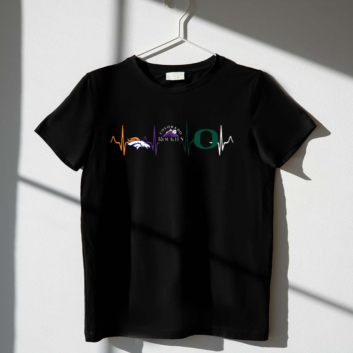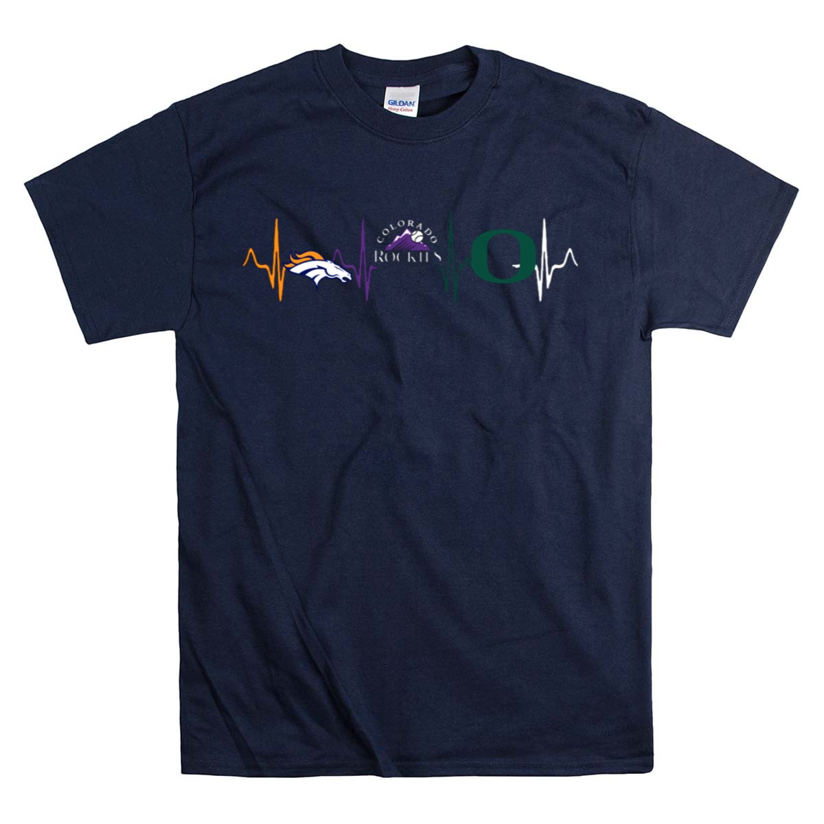 Love Broncos Colorado Rockies Oregon Ducks Heartbeat T-Shirt