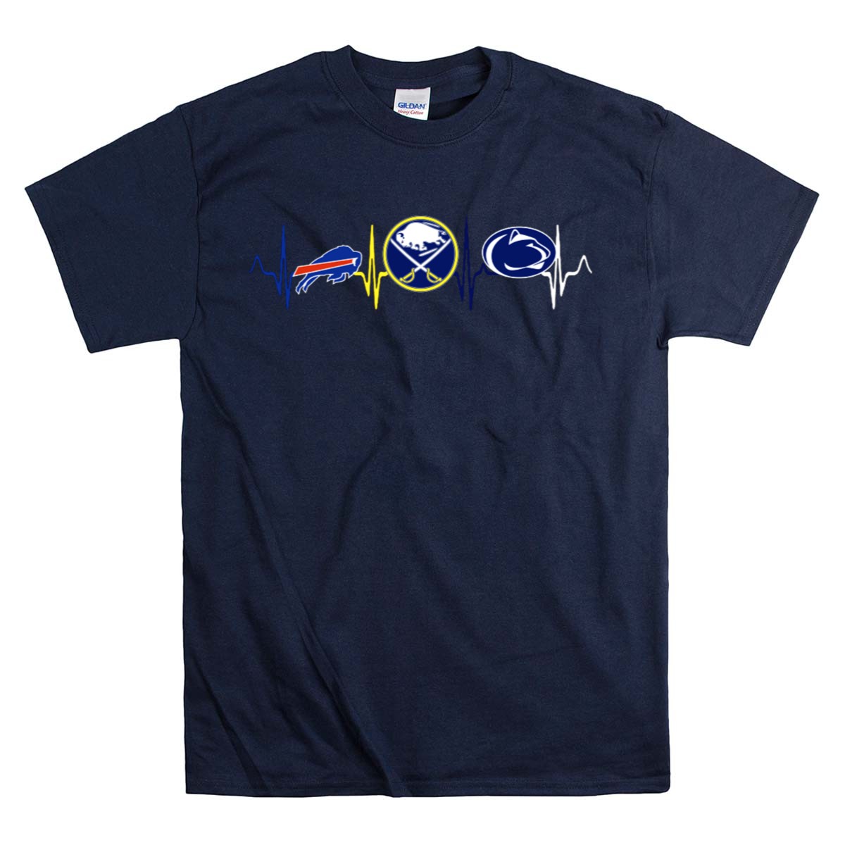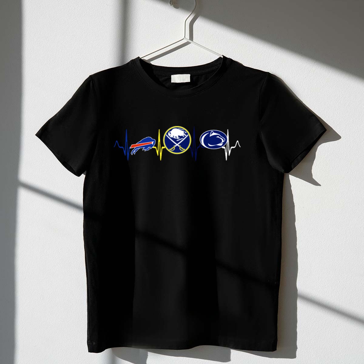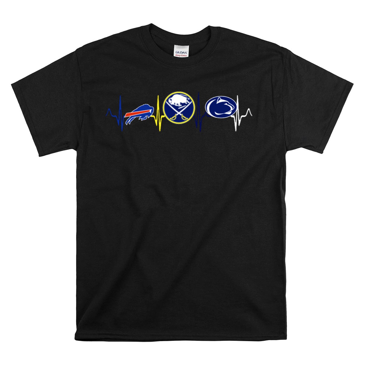 Show your unwavering support for your favorite teams with the Love Buffalo Bills, Buffalo Sabres, and Penn State Nittany Lions Pulse T-Shirt! This fan-made design is perfect for sports enthusiasts who love to showcase their team spirit at casual outings, themed events, or during daily wear. Crafted with comfort and style in mind, this T-shirt is printed in the USA, making it a unique addition to your wardrobe that celebrates your passion for sports.