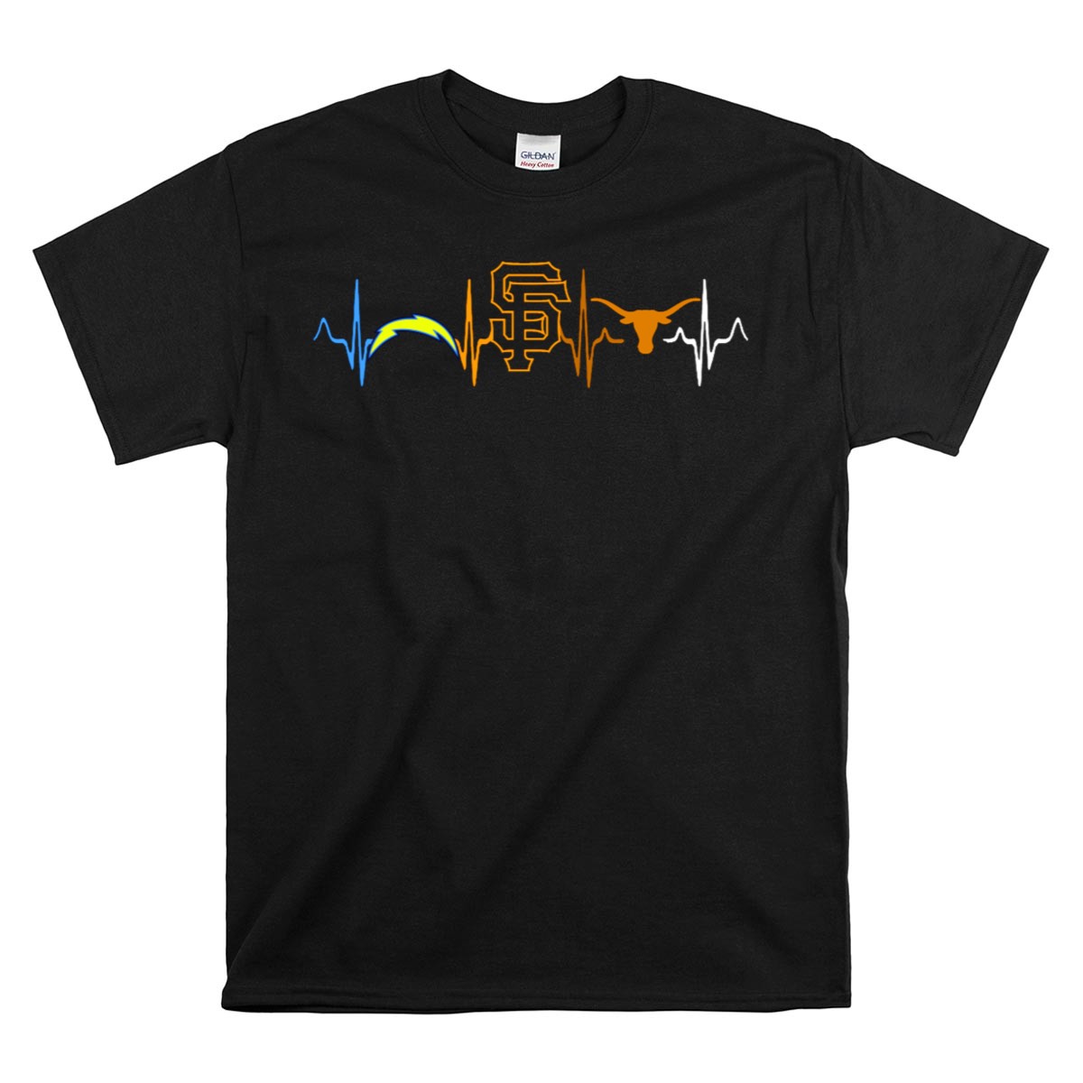 Love Chargers Sf Giants Texas Longhorns Heartbeat T-Shirt