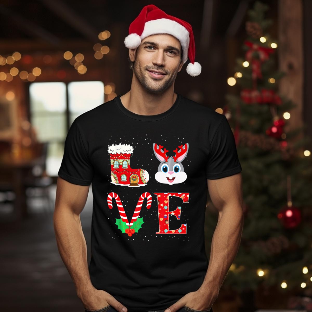 Be the first to review “Love Christmas Boot Rabbit Reindeer Antlers Candy Cane Holly T-Shirt”