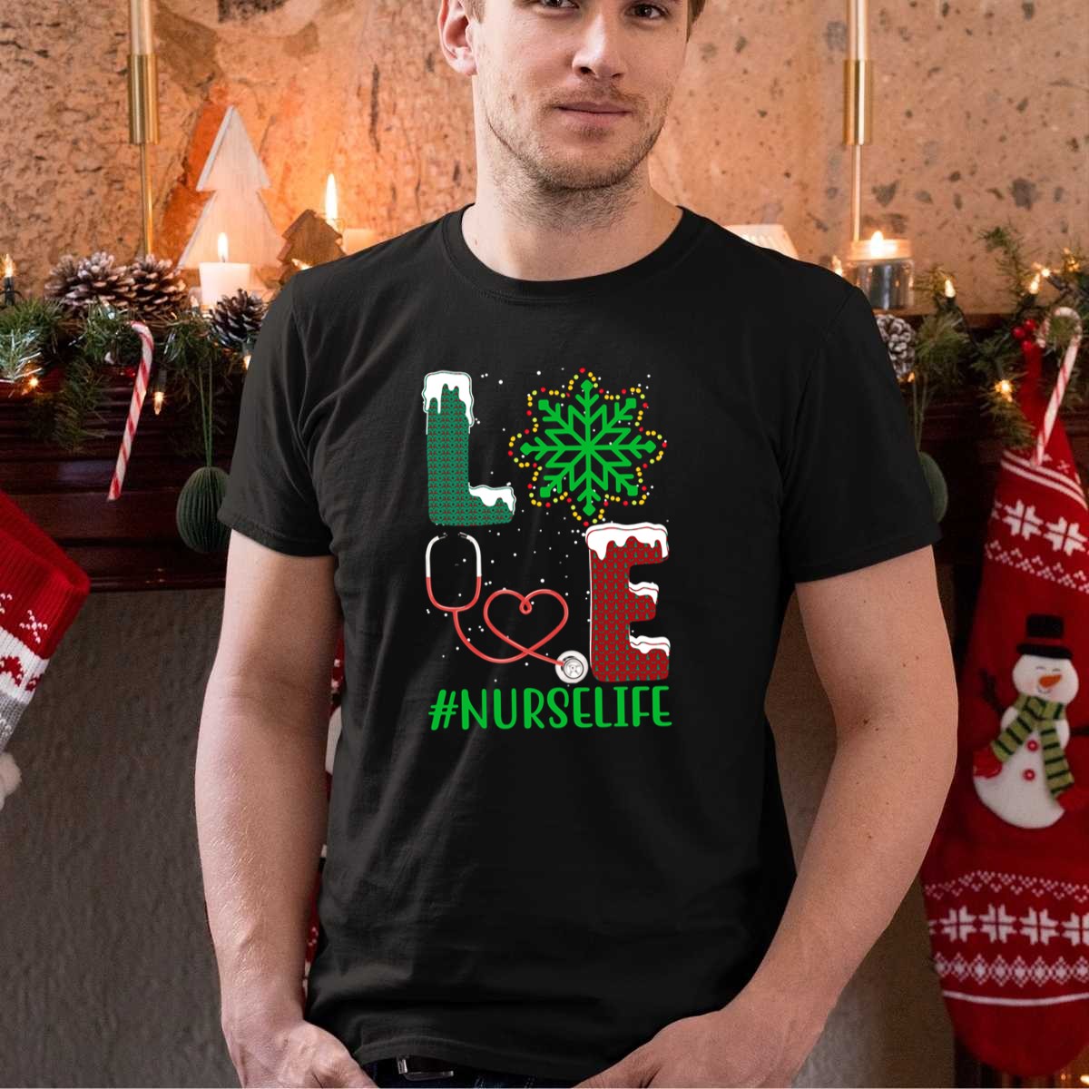 Love Christmas Snowflake Stethoscope Nurselife T-Shirt