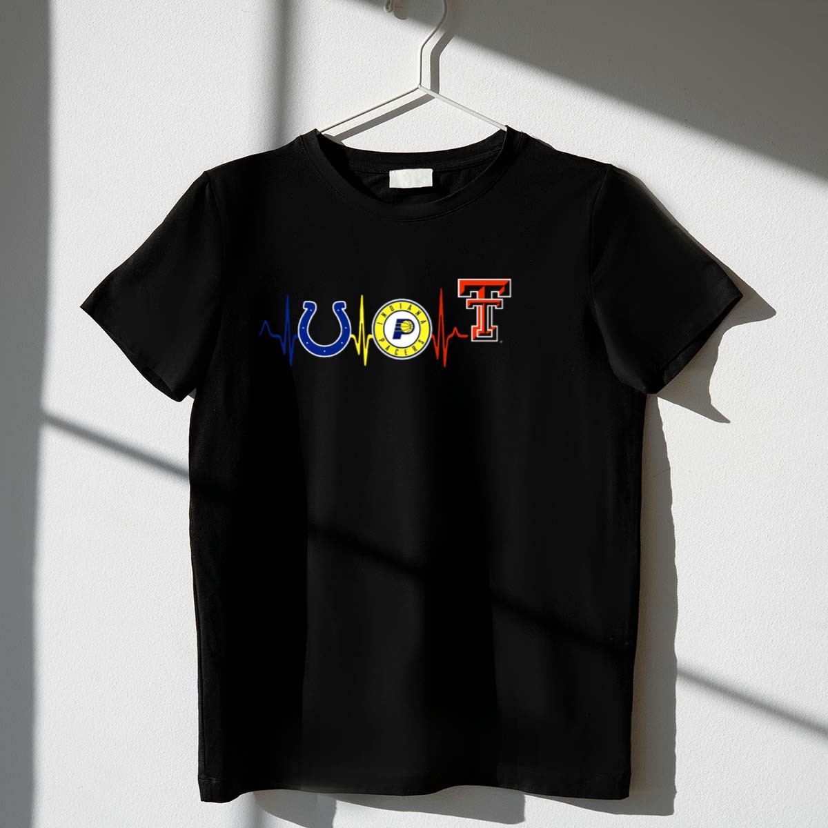 Show your love for the Colts, Pacers, and Texas Tech with this uniquely designed heartbeat T-shirt! Perfect for fans who want to showcase their team spirit in a stylish and comfortable way, this shirt is ideal for casual outings, themed events, or just lounging at home. Made with care and printed in the USA, this fan-made design adds a personal touch to your wardrobe, making it a must-have for any true sports enthusiast.