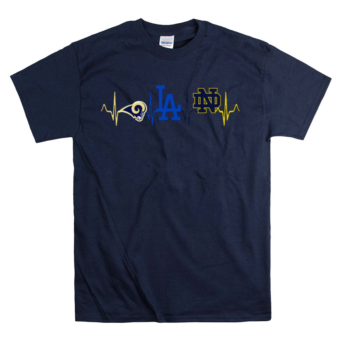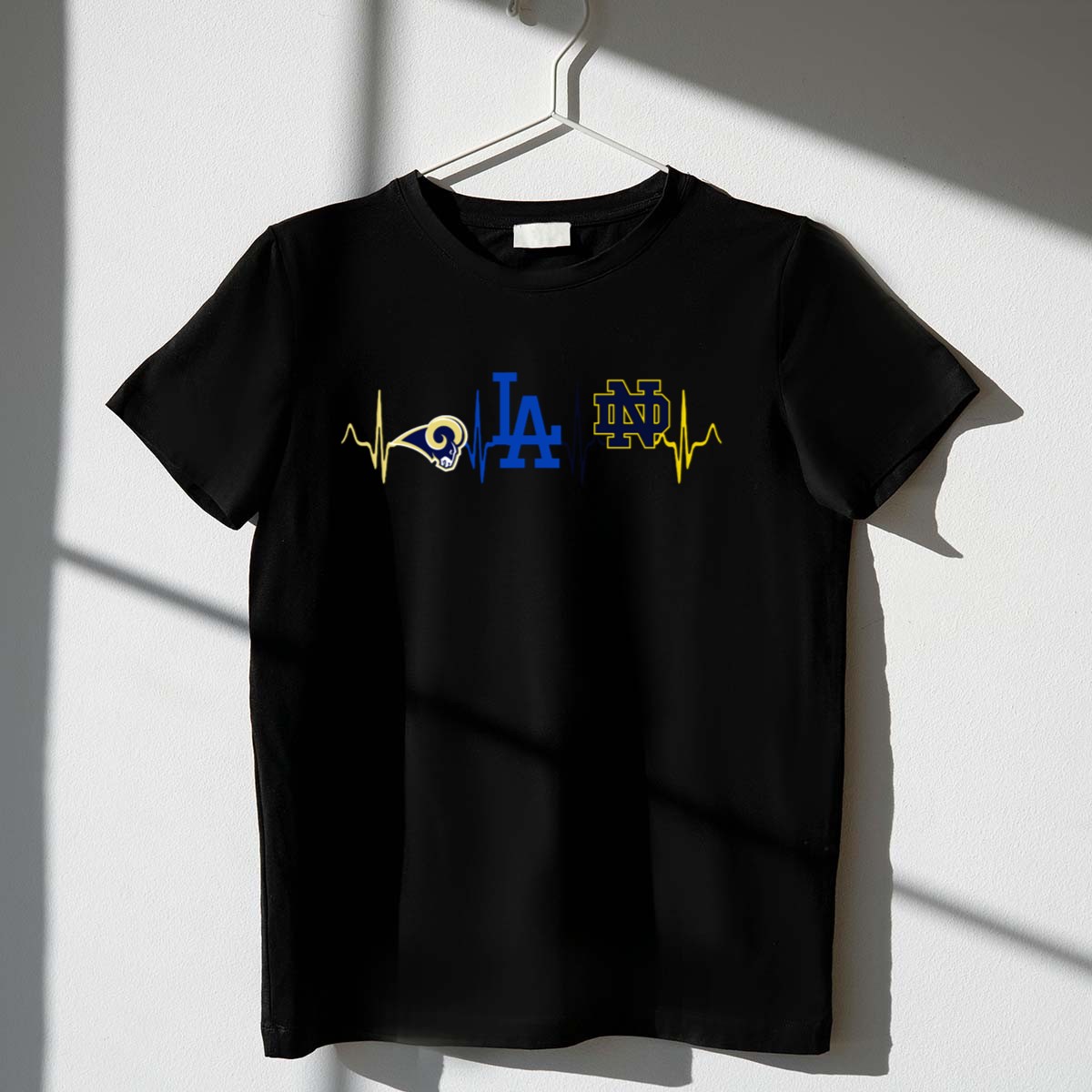 Show your unwavering support for the Notre Dame Fighting Irish, Los Angeles Rams, and Dodgers with our Love La Rams Dodgers Notre Dame Fighting Irish Heartbeat T-Shirt. This fan-made design combines your love for these iconic teams into one stylish and comfortable tee, perfect for game days, casual outings, or themed events. Made in the USA, it’s a must-have for any dedicated sports enthusiast looking to express their passion with pride.